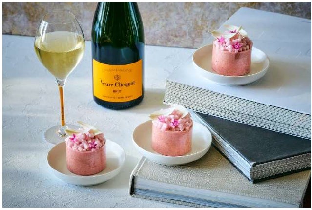 ピーチをテーマにしたスイーツとシャンパーニュのペアリングを楽しめる「スイーツ&バブル-ピーチ」も登場。シャンパンムースやピーチとレモングラスのゼリー、赤桃のコンポートなどを重ねた華やかなスイーツ「バブル」と、ヴーヴ・クリコ イエローラベルのグラスシャンパーニュが織りなす、夏の泡と果実が響き合うひとときをお届けします。
