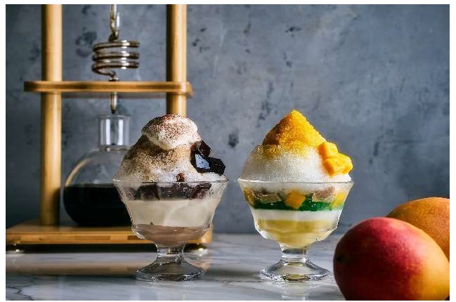 マンゴーやココナッツ、ライム、レモングラスの香りが織りなすトロピカルで爽やかなスイーツかき氷。氷の下には、なめらかなマンゴープリン、ココナッツのパンナコッタ、さらにレモングラスとライムのゼリーを重ね、清涼感のある味わいに仕上げました。フレッシュマンゴーの瑞々しさ、やわらかなパンナコッタ、ザクザクとしたフィヤンティーヌの異なる食感と味わいが織りなす、リズミカルな食体験をぜひご堪能ください。