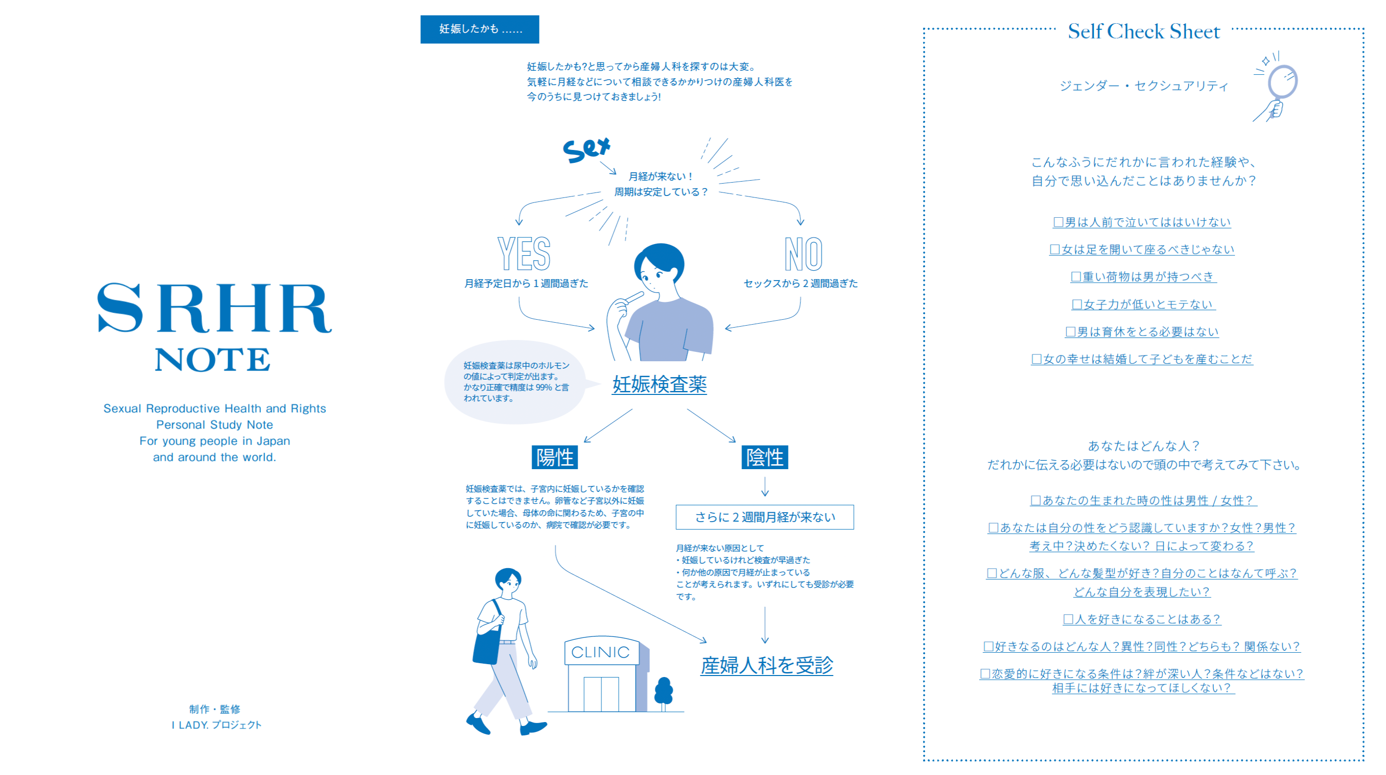 現在、I LADY.で製作中の「自分自身の SRHR と向き合うための"SRHRノート"」をいち早く使用し、ページをめくりながら、性に関する知識とライフスキルを身につけて、あなた自身の「 性 」そして「自分らしさ」と向き合ってみませんか?