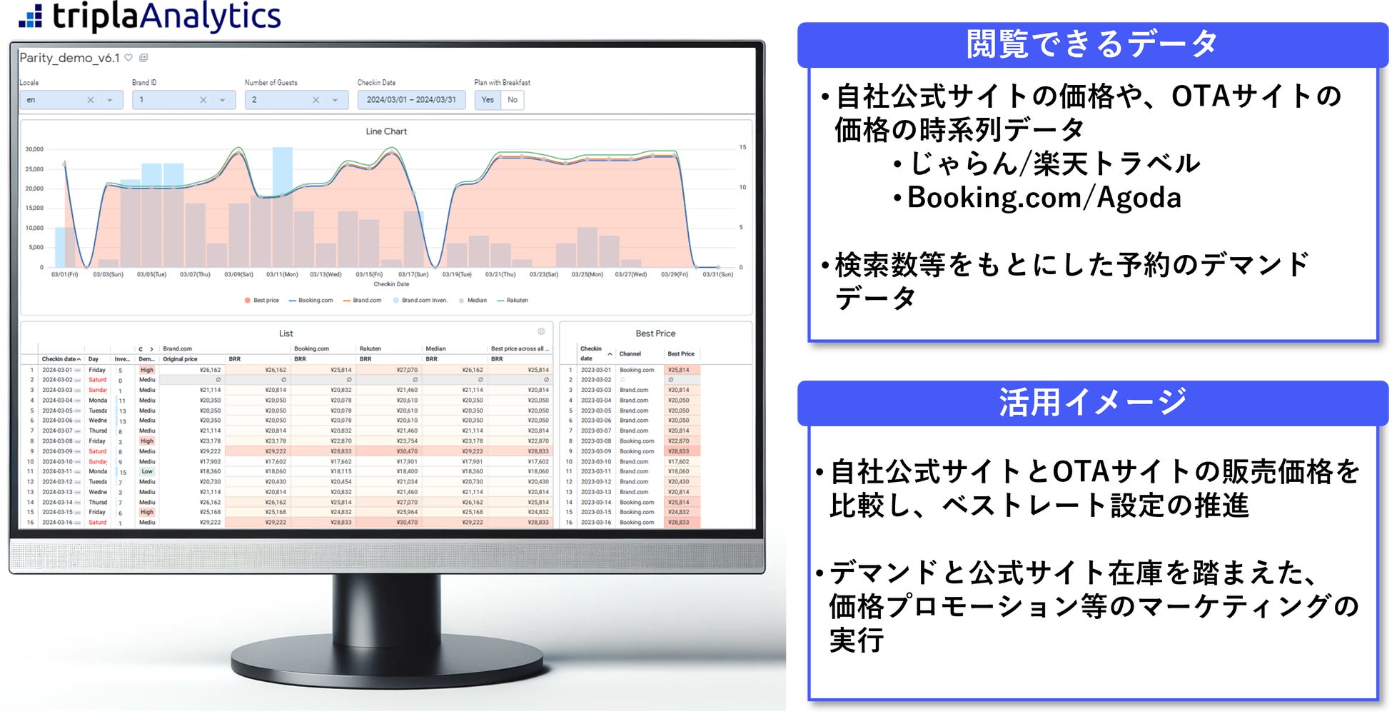 「tripla Analytics」は、市場動向を把握した競争力のある価格設定と、市場変化への迅速な対応を後押しし、宿泊施設のより戦略的な経営の実現に貢献します。