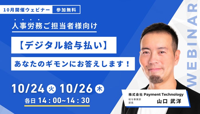 <デジタル給与払いに関する解説ウェビナーのお知らせ>『人事労務担当者向け【デジタル給与払い】あなたのギモンにお答えします!』