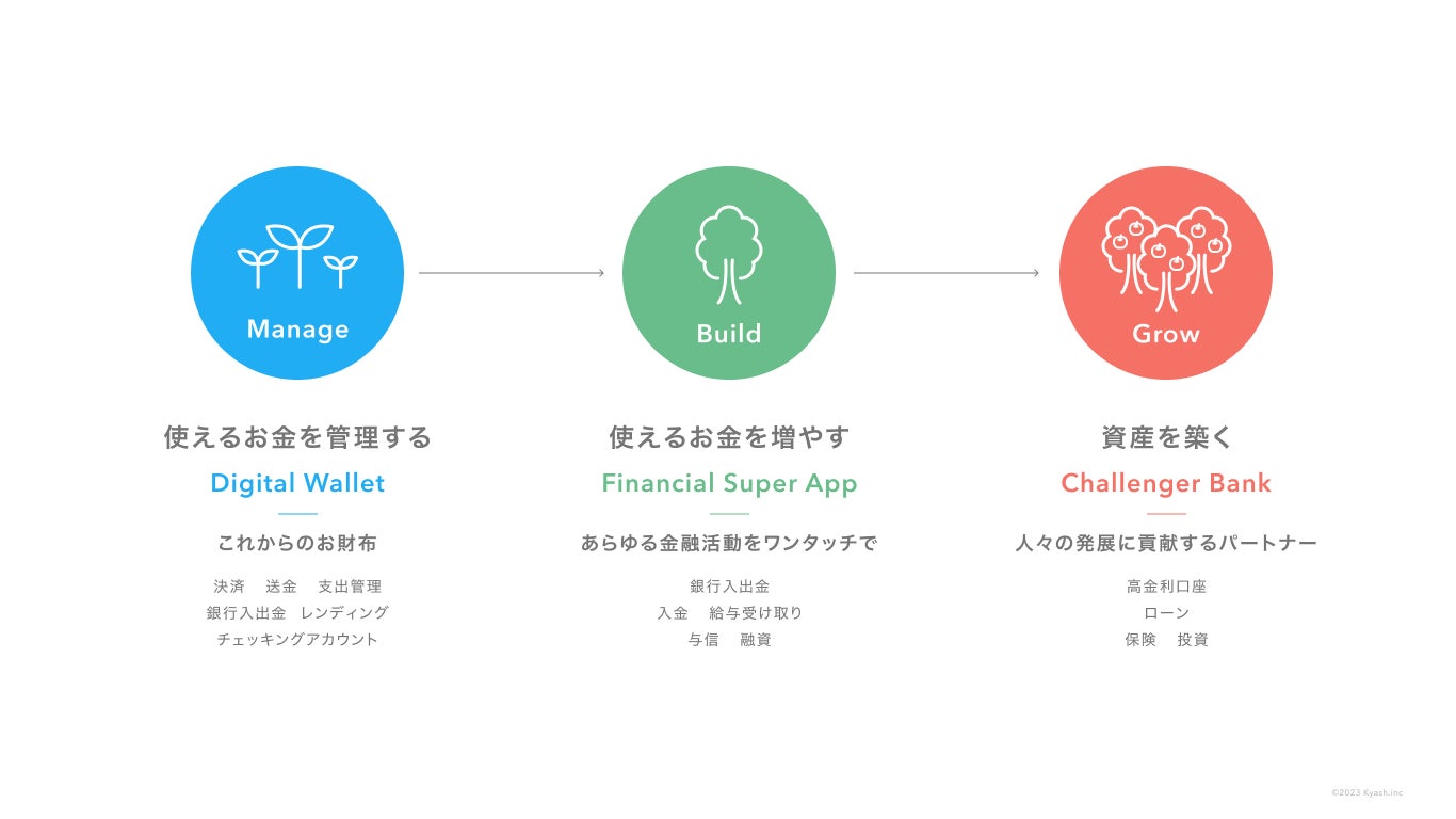株式会社Kyash(本社:東京都港区、代表取締役社長:鷹取 真一、以下「当社」)は、人々のお金に関する不安やストレスが少ない「フィナンシャルウェルビーイング」の実現に向けて、テクノロジーの力を最大限に活かし、お金とそこに込められた想いをもっと自由に届けられるサービスの提供を目指します。