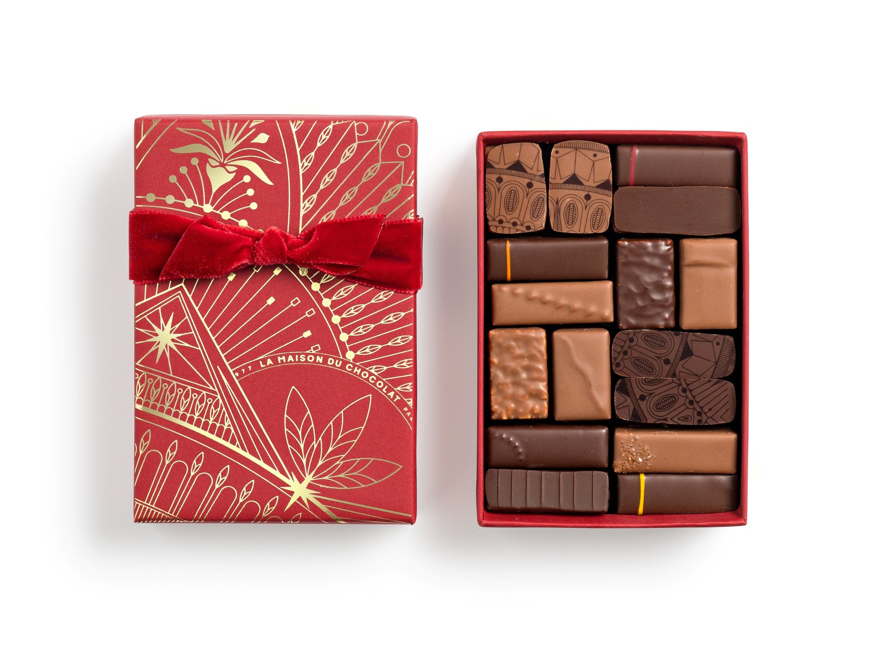 1977年の創業から変わることなく手仕事による製造を守り続けるブランド。2025年クリスマスのデザインボックスに2種の限定ボンボンドゥショコラと、ガナッシュやプラリネといった定番人気のボンボンドゥショコラを詰め合わせた限定品などを取り揃えます。