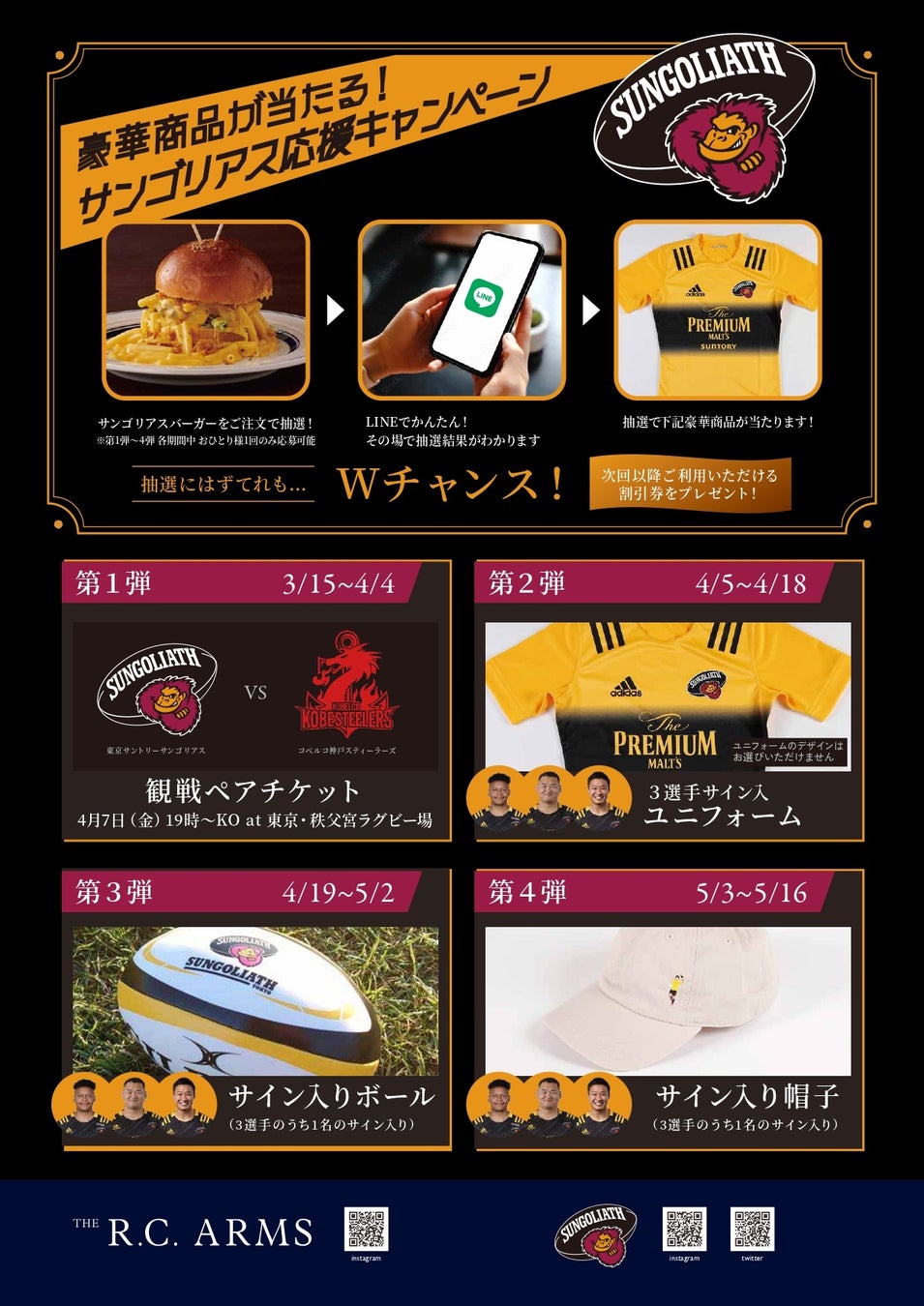 『東京サントリーサンゴリアス』×『THE R.C. ARMS』のコラボメニューを販売