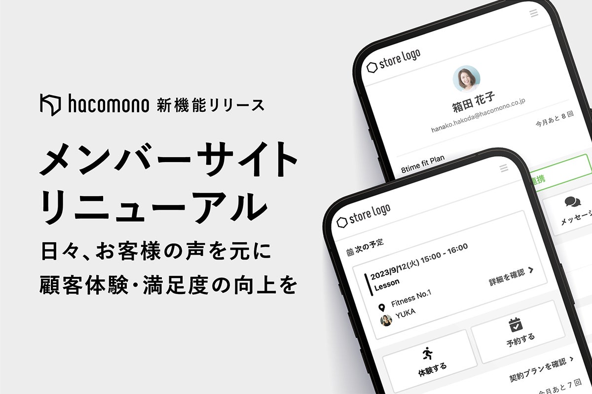 hacomono、お客様の声を元に機能改善を行い、メンバーサイトをリニューアル。利便性向上により、店舗の顧客体験・満足度向上に貢献