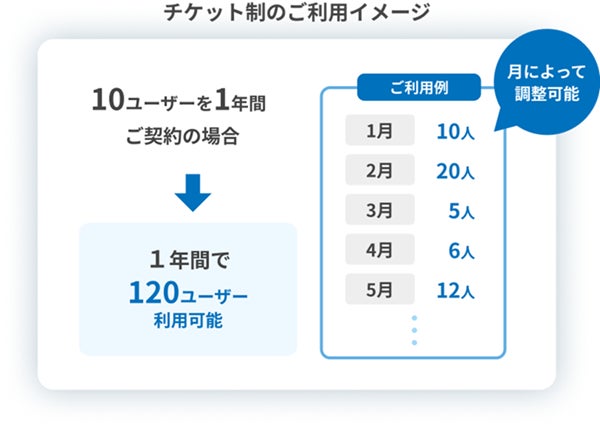 「まもりも」は、ユーザー数に応じて購入するチケット制を採用しています。チケットを利用しきれなかった場合でも、未使用分は翌年に繰り越せます。そのため、企業の規模や利用頻度に応じた運用が可能であり、業務の繁閑により就業者数が増減する場合でも無駄なく利用できます。