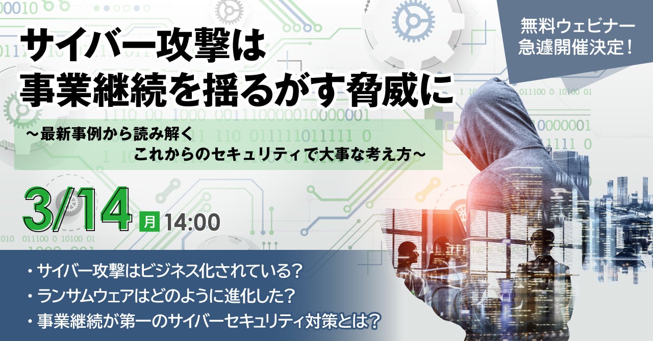 事業継続を揺るがすサイバー攻撃の脅威。組織とビジネスを守るために今、なにをするべきなのか?【3/14 ウェビナー開催決定】
