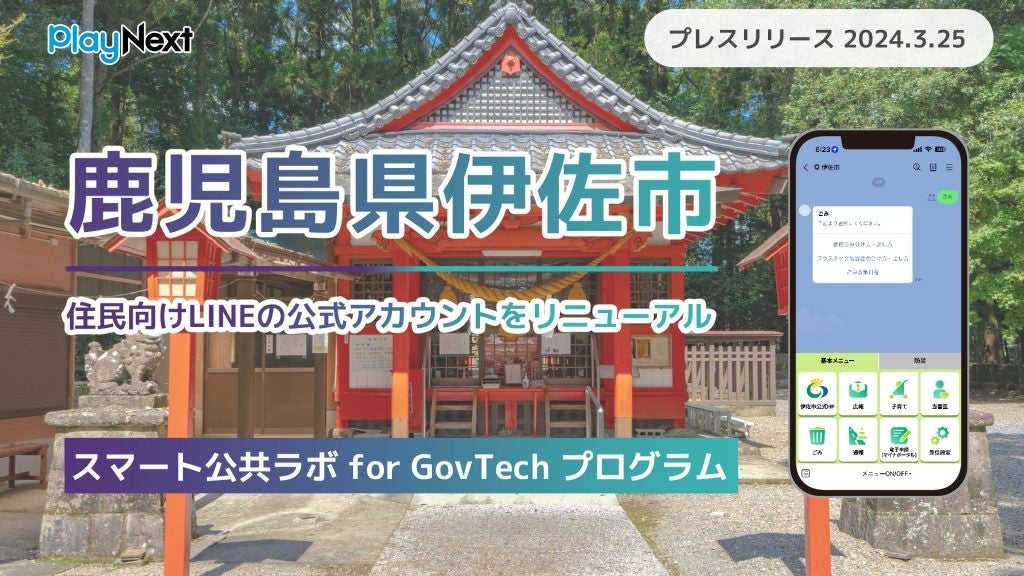 プレイネクストラボ株式会社(本社:東京都品川区、代表取締役:柏 匠、以下 「プレイネクストラボ」)は鹿児島県伊佐市(以下「伊佐市」)LINE公式アカウントのリニューアルに「スマート公共ラボ for GovTechプログラム」を活用し、2024年3月25日(月)より一般公開したことをお知らせします。