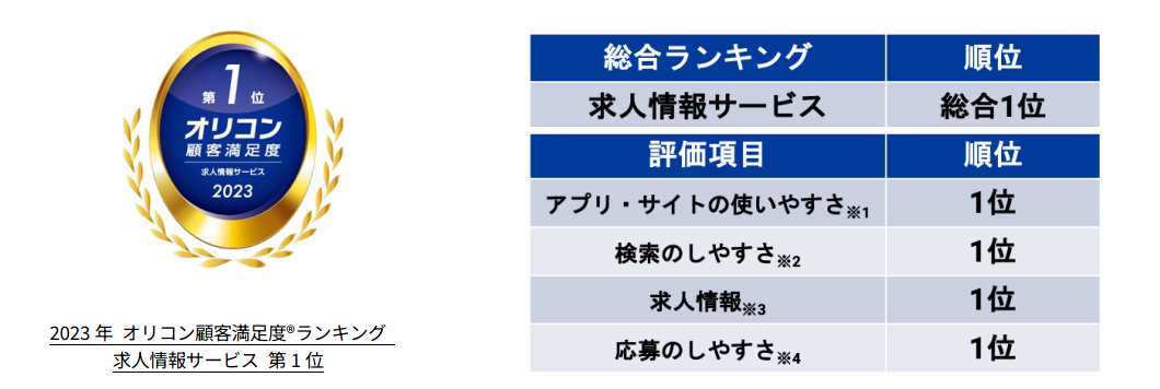 ※3:掲載求人の件数の多さ、更新頻度、正確さ など