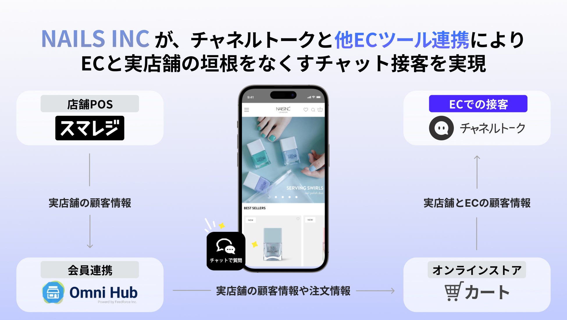 ファッションネイルブランド「NAILS INC」がチャネルトークを導入し、他ECツール連携により、ECと実店舗の垣根をなくすチャット接客を実現