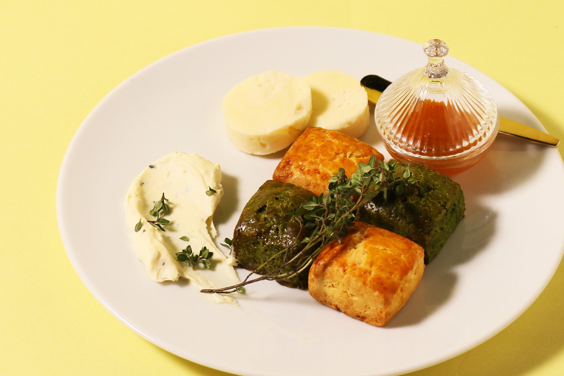 ほうじ茶のテリーヌ、青葡萄×マリーゴールド