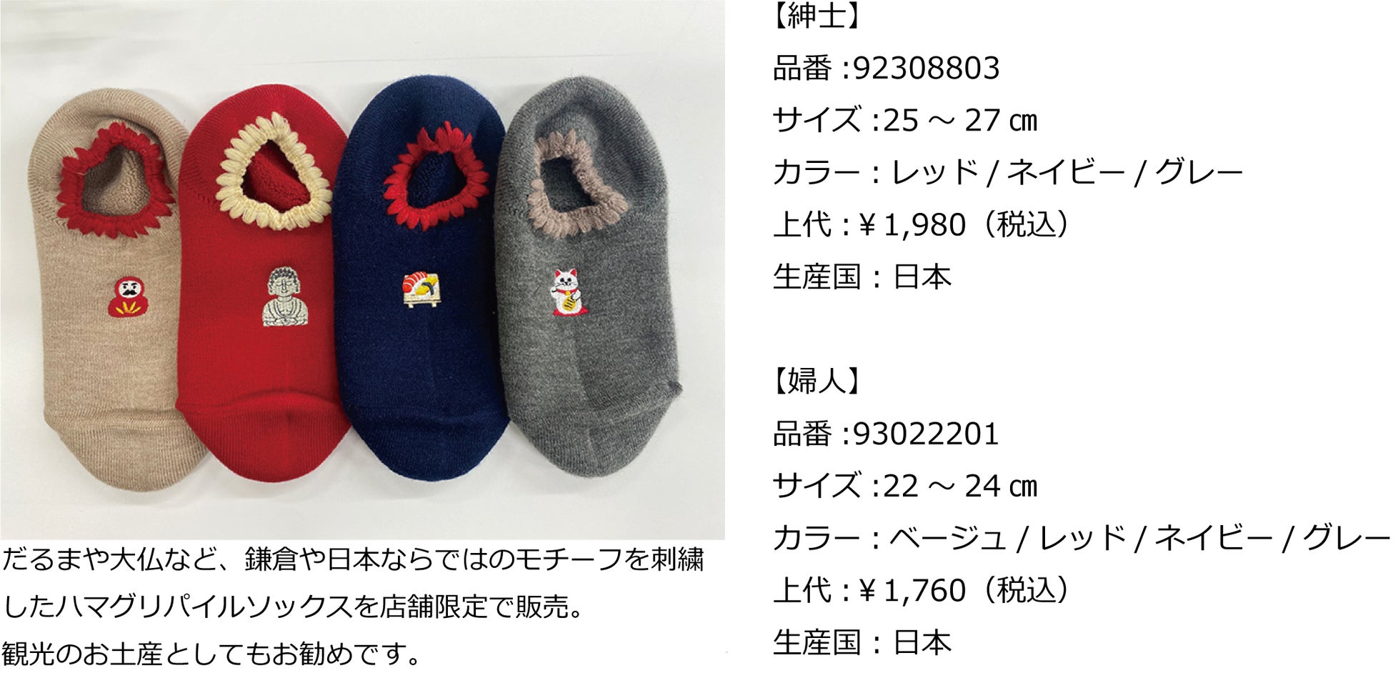 ナイガイが誇るルームソックスの先駆け「ハマグリパイルソックス」をご用意。