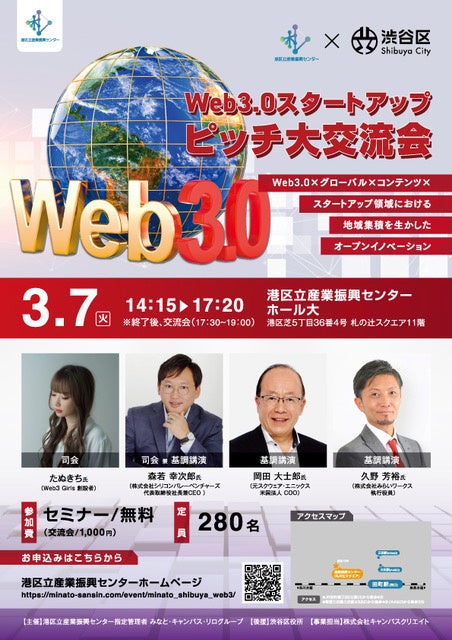 港区立産業振興センター(所在地:東京都港区)では、3月7日に「港区×渋谷区 Web3.0スタートアップ ピッチ大交流会-Minato Base 交流イベント-」を開催いたします。