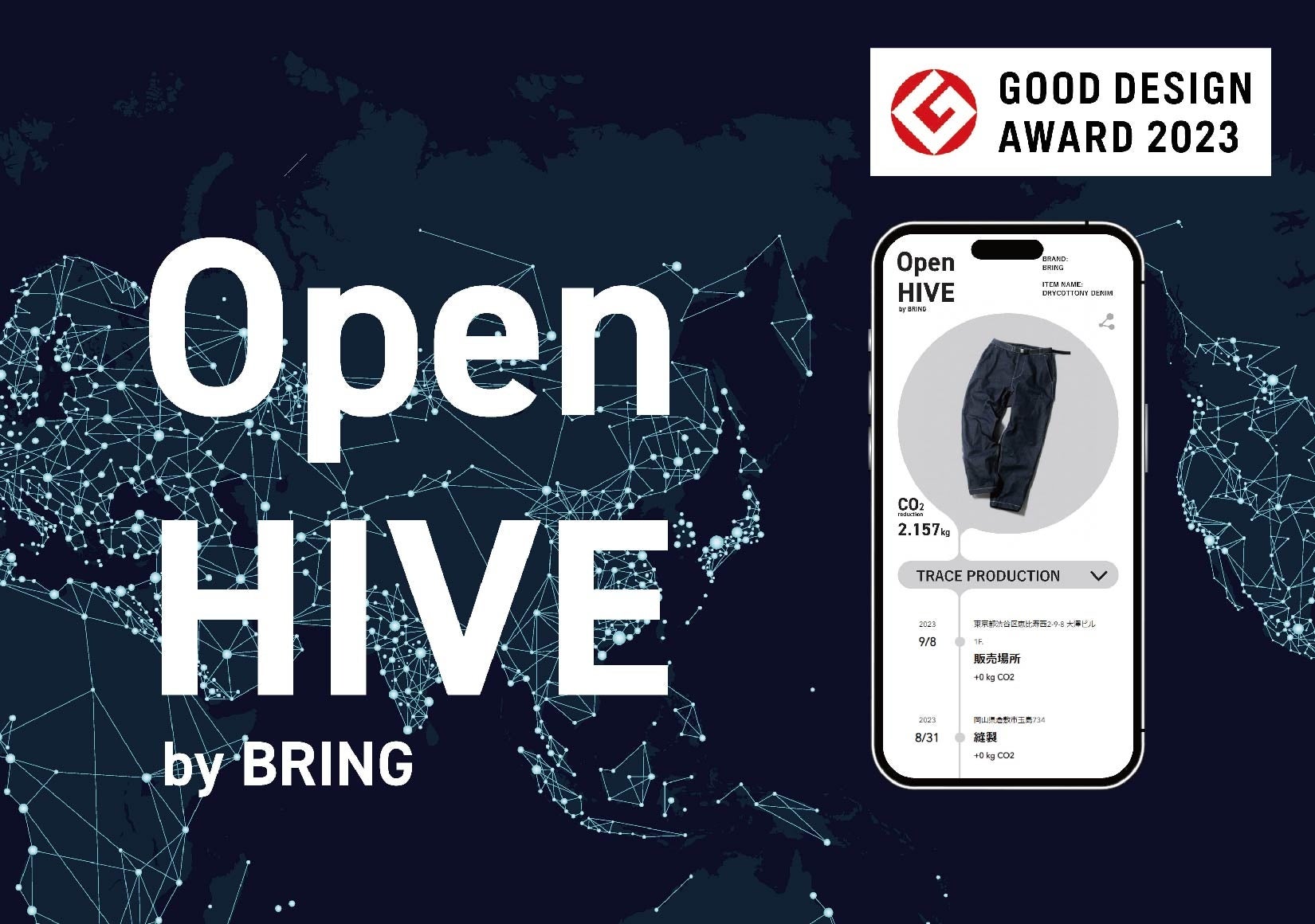 BRINGは、2010年から様々なブランドと協力し不要になった衣類の回収を行い、リユースまたは素材ごとにリサイクルしています。この資源循環の取り組みを「Open HIVE」によって可視化することで、消費者は実際に自分の購入した服が、どこで回収され、どのようにリサイクルされて、自分の手元に届いたのかを閲覧することが可能になります。