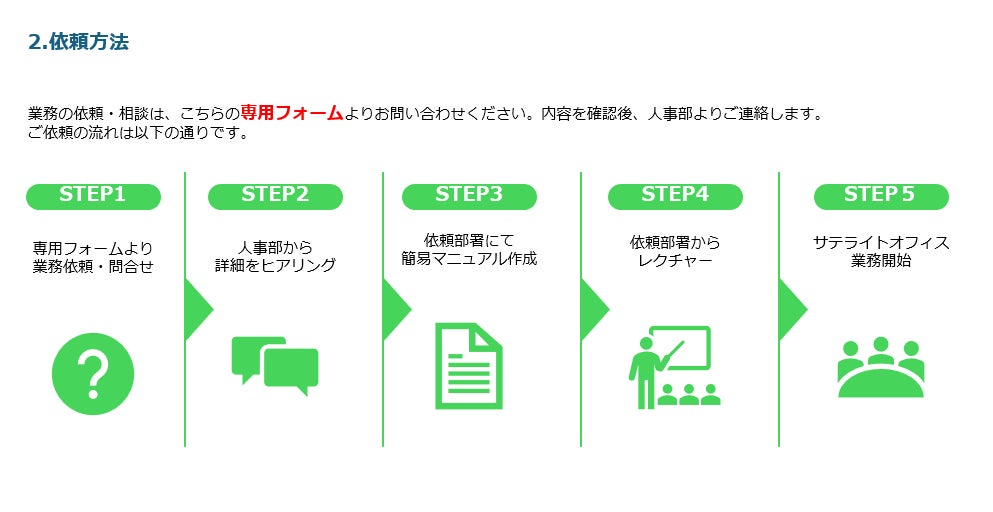 INCLUに興味を持った社員が、実際に業務を依頼するためのフローを掲載することで、気軽に業務依頼の相談が入るようになった