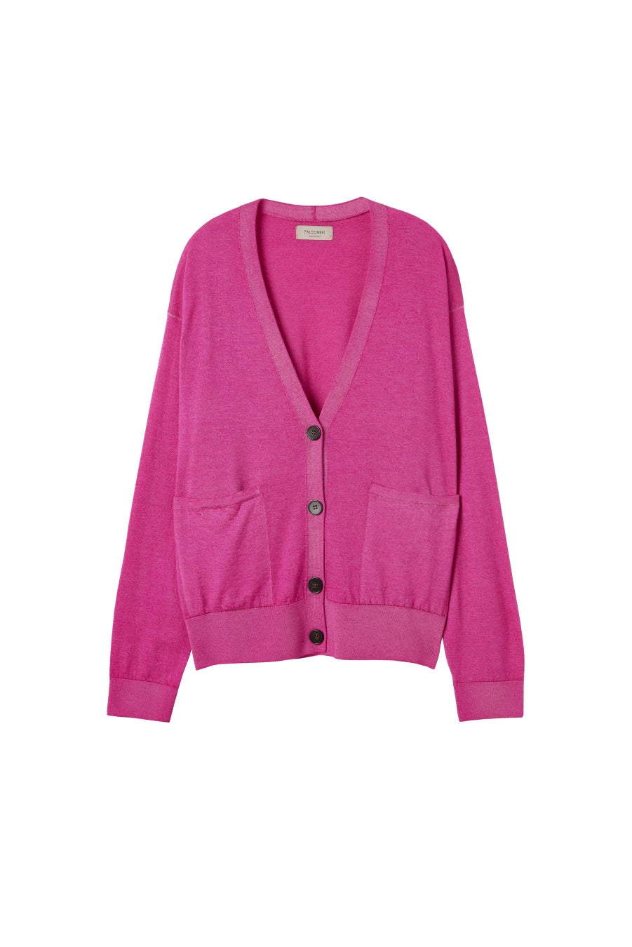 また、新しいコレクションの中心は、ウルトラファインカシミヤの4つボタンが着いた4ボタンのVネックのカーディガンです。ほんの少しドロップショルダーでルースフィットのシルエットが個性的なファルコネーリのデザインは、コンフィーシックでマストハブアイテムです。