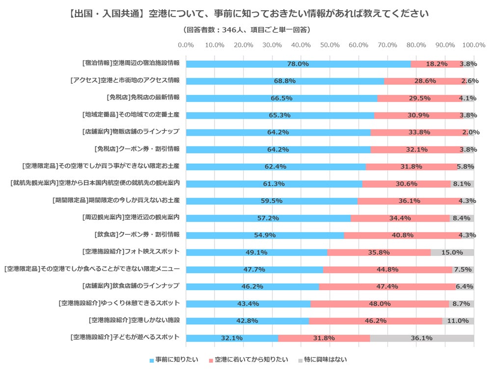 ■「空港について、事前に知っておきたい情報があれば教えてください」(回答者数:346人、項目ごと単一回答)