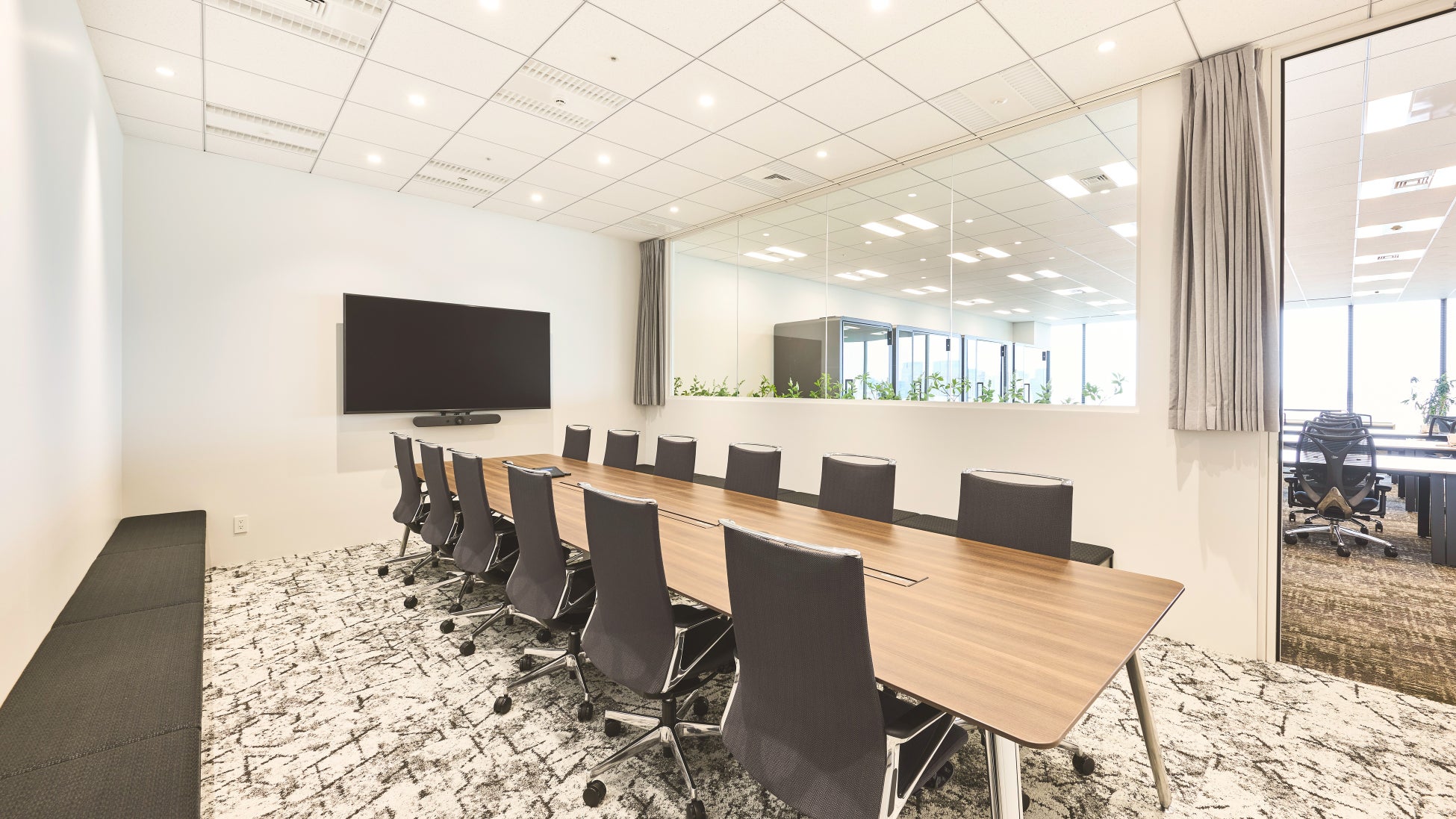 全会議室に大型ディスプレイと無線投影を完備。どこにいても最新の情報へアクセスし、議論を即座に同期できる環境