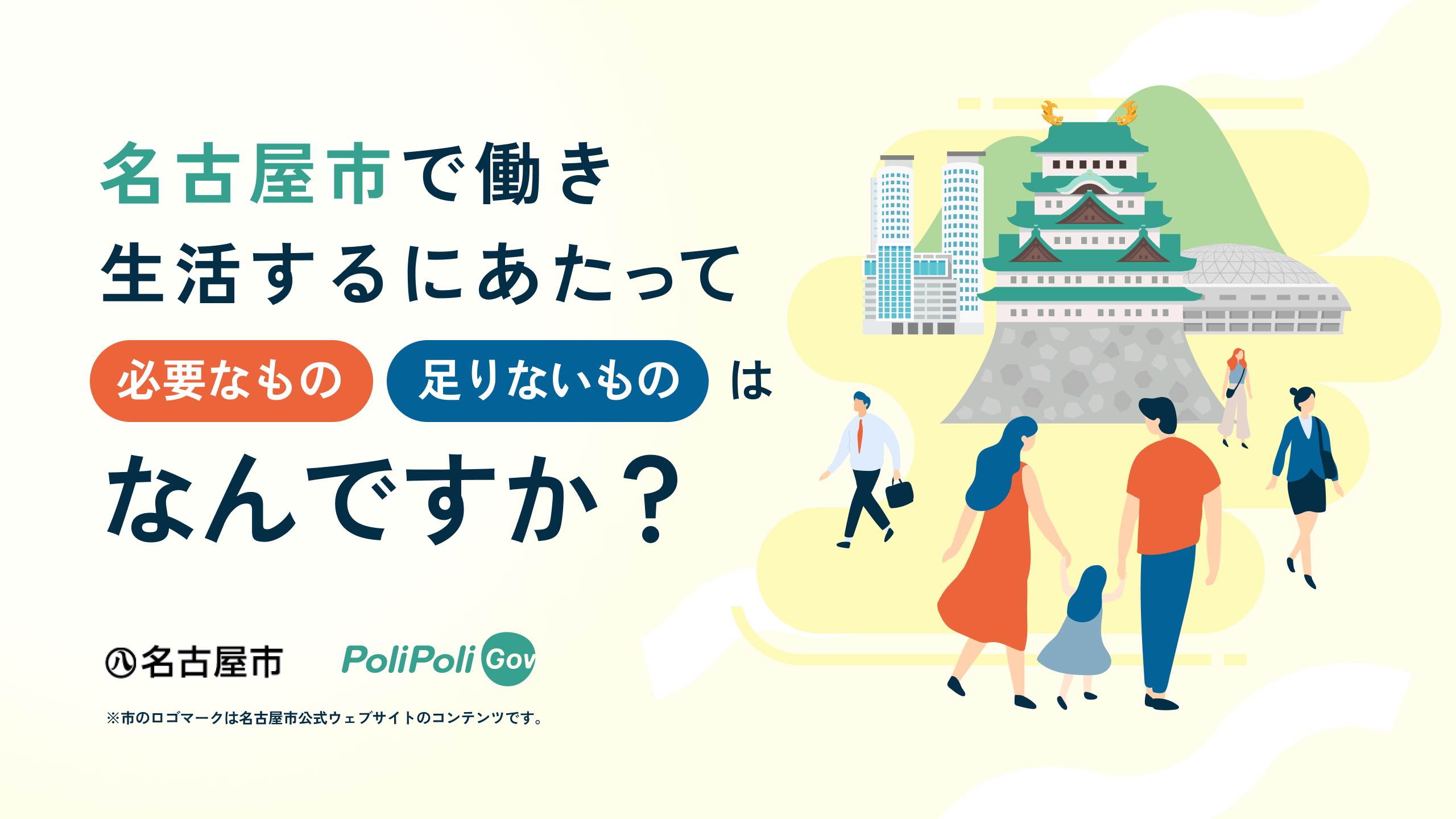 株式会社PoliPoli(所在地:東京都千代田区、代表取締役:伊藤和真、以下 PoliPoli)は、名古屋市が実施する「名古屋市で働き、生活するにあたって、必要なもの・足りないものはなんですか?」に関する意見募集に『PoliPoli Gov』が利用されることをお知らせします。