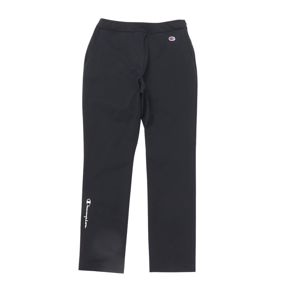 ポリエステルの捲縮(けんしゅく)糸を使用することで、高いストレッチ性による動きやすさと、ドライ感のある肌触りの良さを実現したロングパンツです。撥水機能も備えています。ノータックのシンプルなテーパードシルエットで、ウエストはフィット感を高めるゴム入り仕様。サイドのファスナーで着用するベルト不要のタイプなので、腰周りがすっきり見えます。両サイドにポケット、右サイドにコインポケット、後部にはDカンを付けています。右裾脇に光沢のある転写プリントでChampion(チャンピオン)ロゴを入れています。