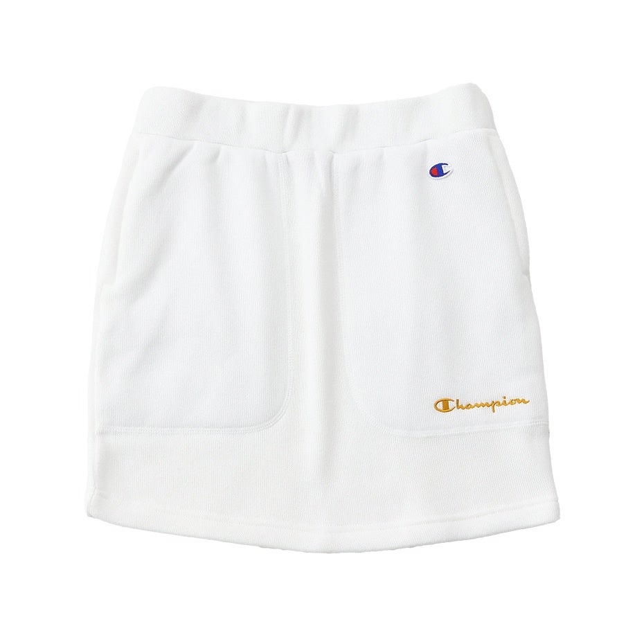 環境に配慮されたリサイクルポリエステル100%の素材を使用し、裏面を深く起毛することで軽量ながら暖かさとボリューム感を実現したスカートです。静電気が起きにくい加工も行っています。ウエストはフィット感を高めるゴム入り仕様で、内側にChampion(チャンピオン)ロゴを入れたドローコード付き。正面両サイドのポケットは、縫い合わせることで裏側の凹凸をなくし、肌面のストレスを軽減した仕様です。左サイドのポケットにはChampionロゴを刺繍し、後部にはDカンを付けています。オフホワイトのみインナースカートを別付けしています。https://www.hanesbrandsinc.jp/champion_sports/g/gCW-YG207-020-S/