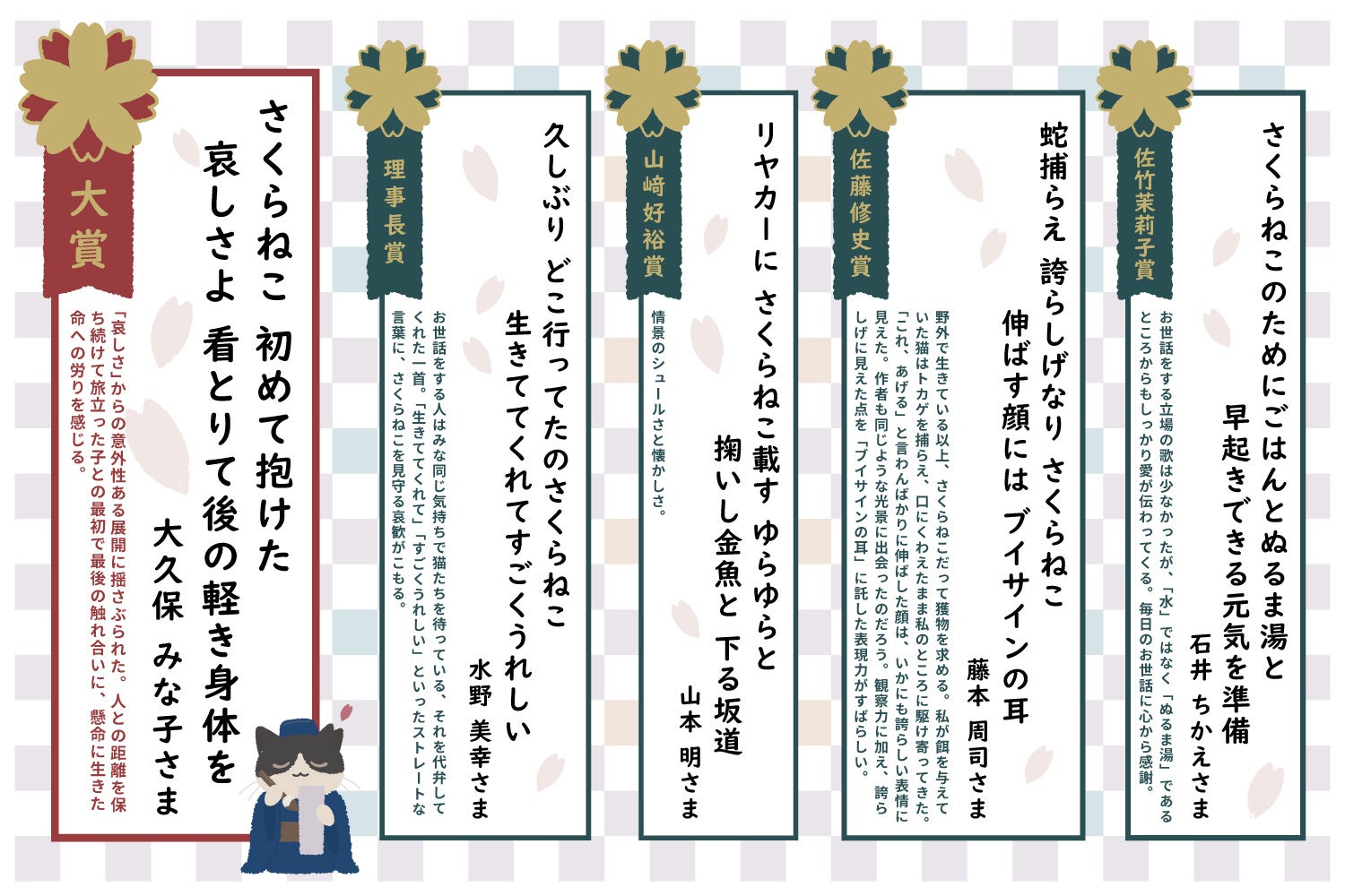 最後になりますが、「さくらねこ短歌コンテスト」にご応募いただいた皆様、ならびに審査員の皆様、協賛いただいた企業様に心より感謝を申し上げます。