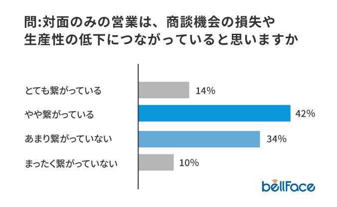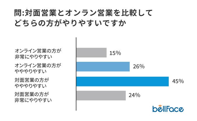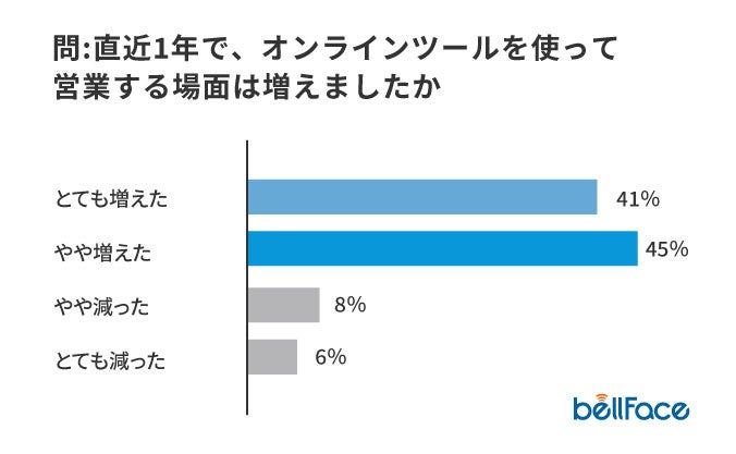 テレワークが減った、終わったというニュースも多く聞かれるようになりましたが、ではオンライン営業の現在地はどうなのでしょうか?実態を明らかにするべく、オンライン商談システム「bellFace(ベルフェイス)」の開発・販売事業を行う、ベルフェイス株式会社(本社:東京都渋谷区、代表取締役:中島 一明、以下ベルフェイス)は、全国のオンライン営業1年以上経験者の営業職1,000人を対象にアンケート調査を行いました。