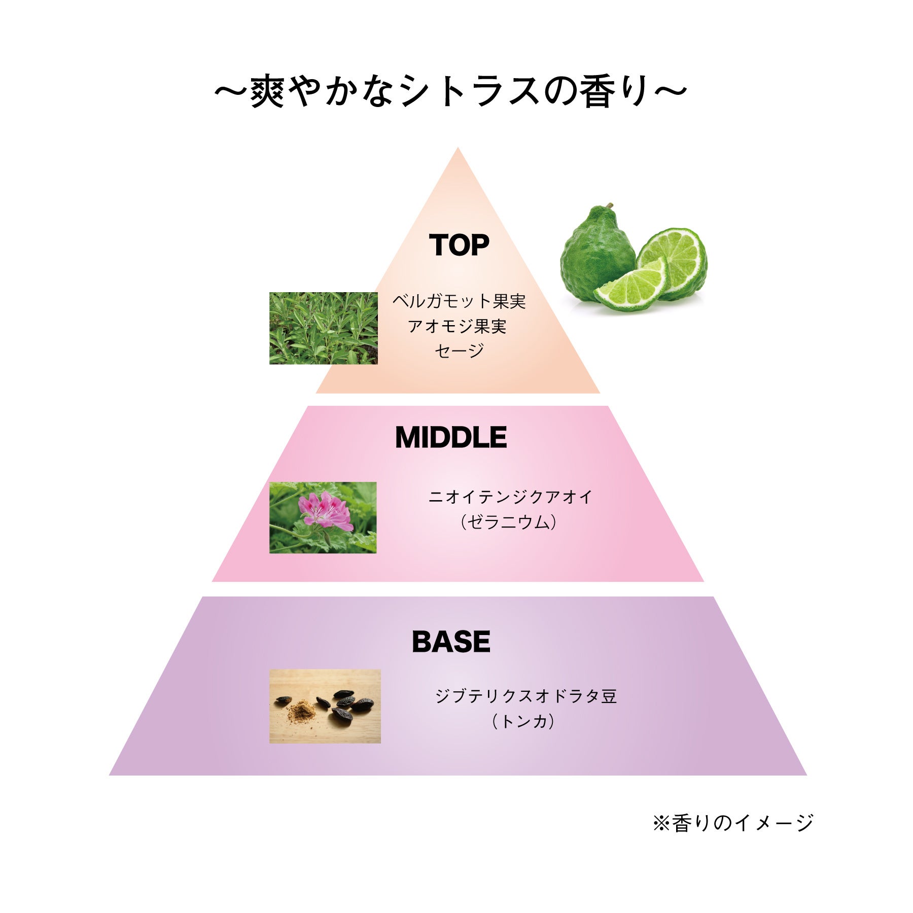 水/エタノール/ポリソルベート80/メントール/ニオイテンジクアオイ油/セージ油/アオモジ果実油/ベルガモット果実油/ジプテリクスオドラタ豆エキス/アルテミシアパレンス花油