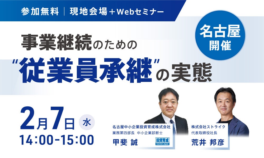 2月7日(水)名古屋で開催!事業継続のための『従業員承継』の実態