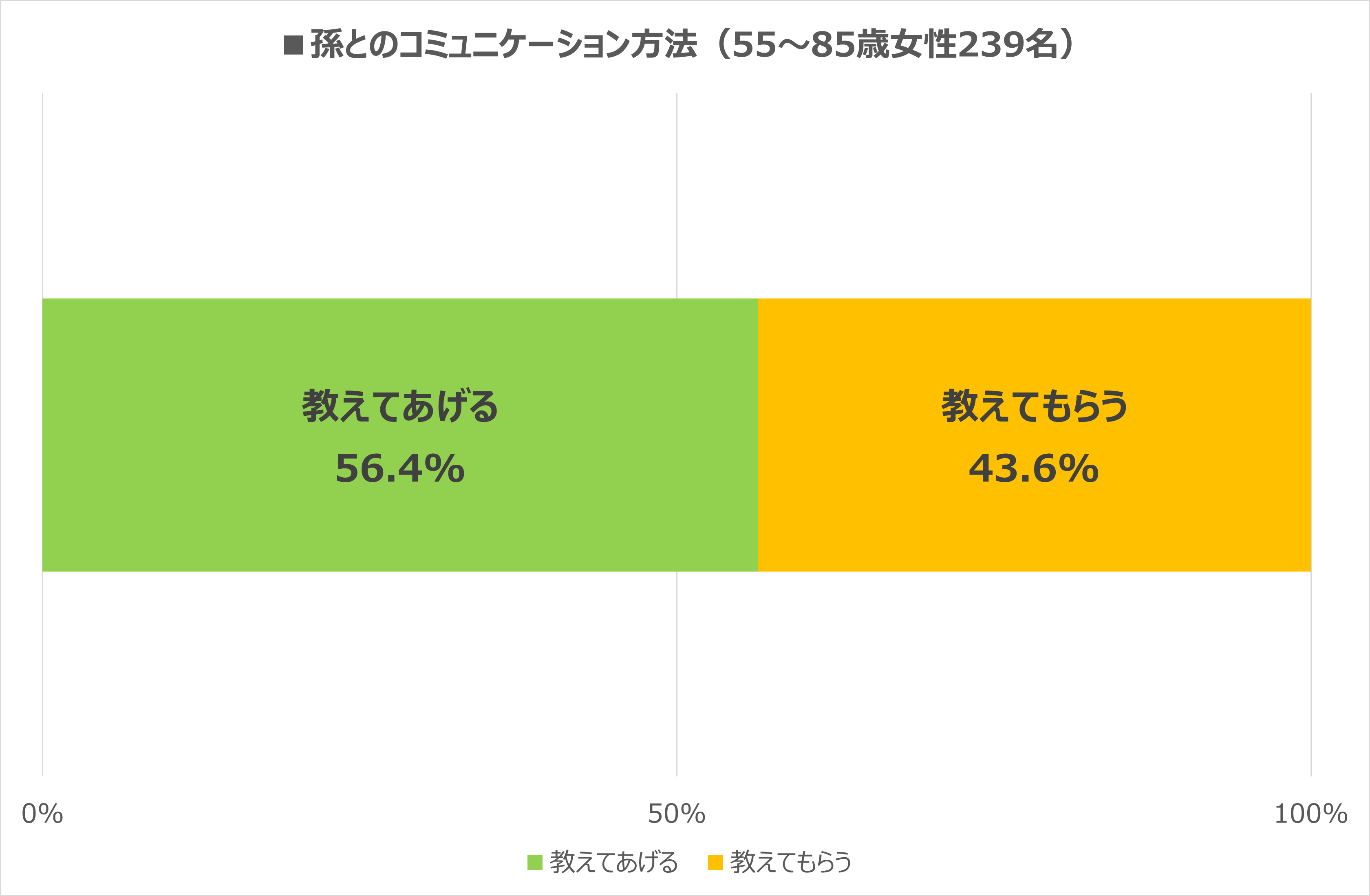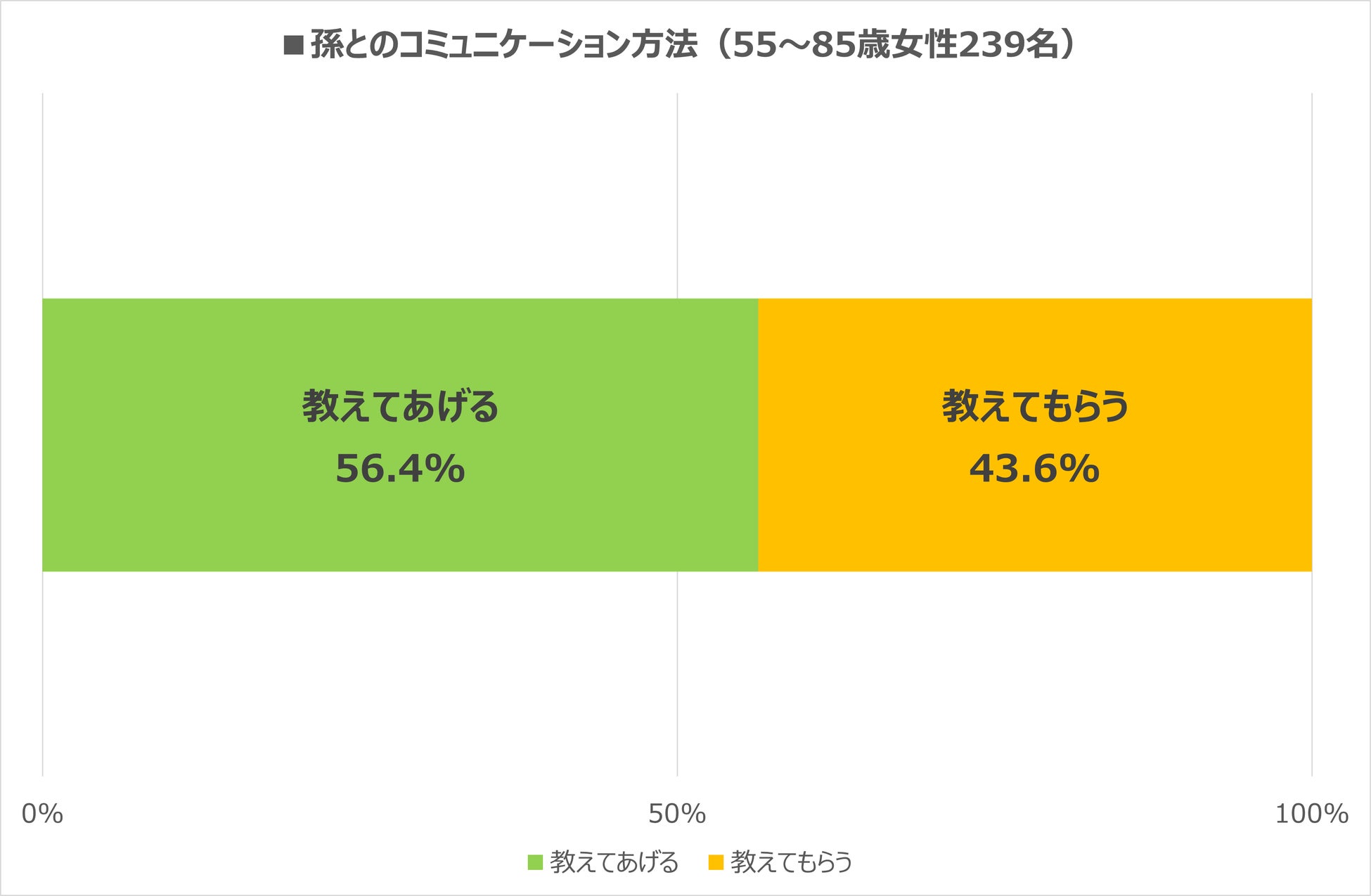 ・なお、「自分が教える」か「孫から教えてもらう」かの割合(100%の内訳)は、56.4%:43.6%。