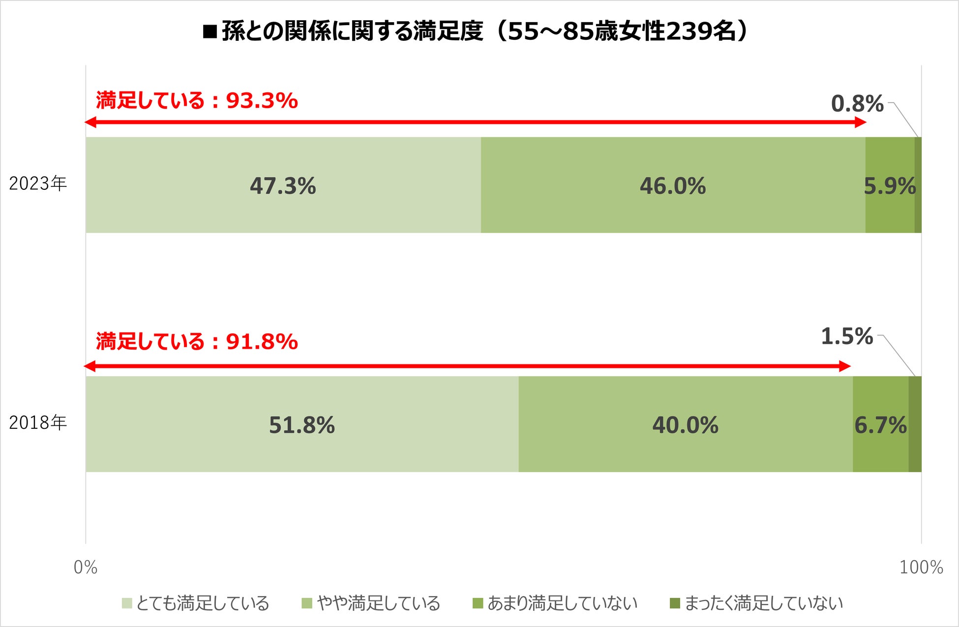 ・孫との関係に93.3%が満足と回答。前回調査の91.8%よりも満足度が高まっている。