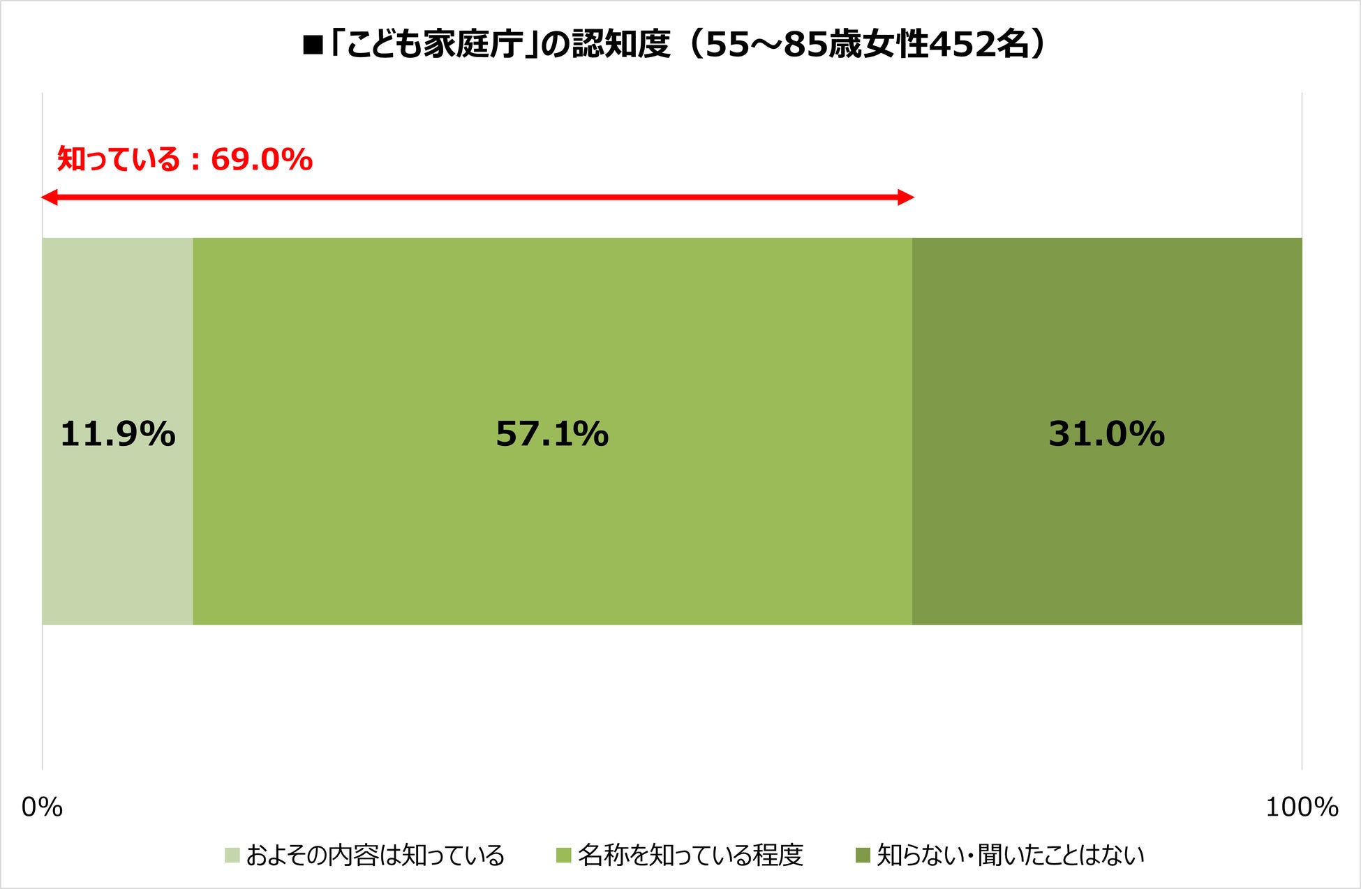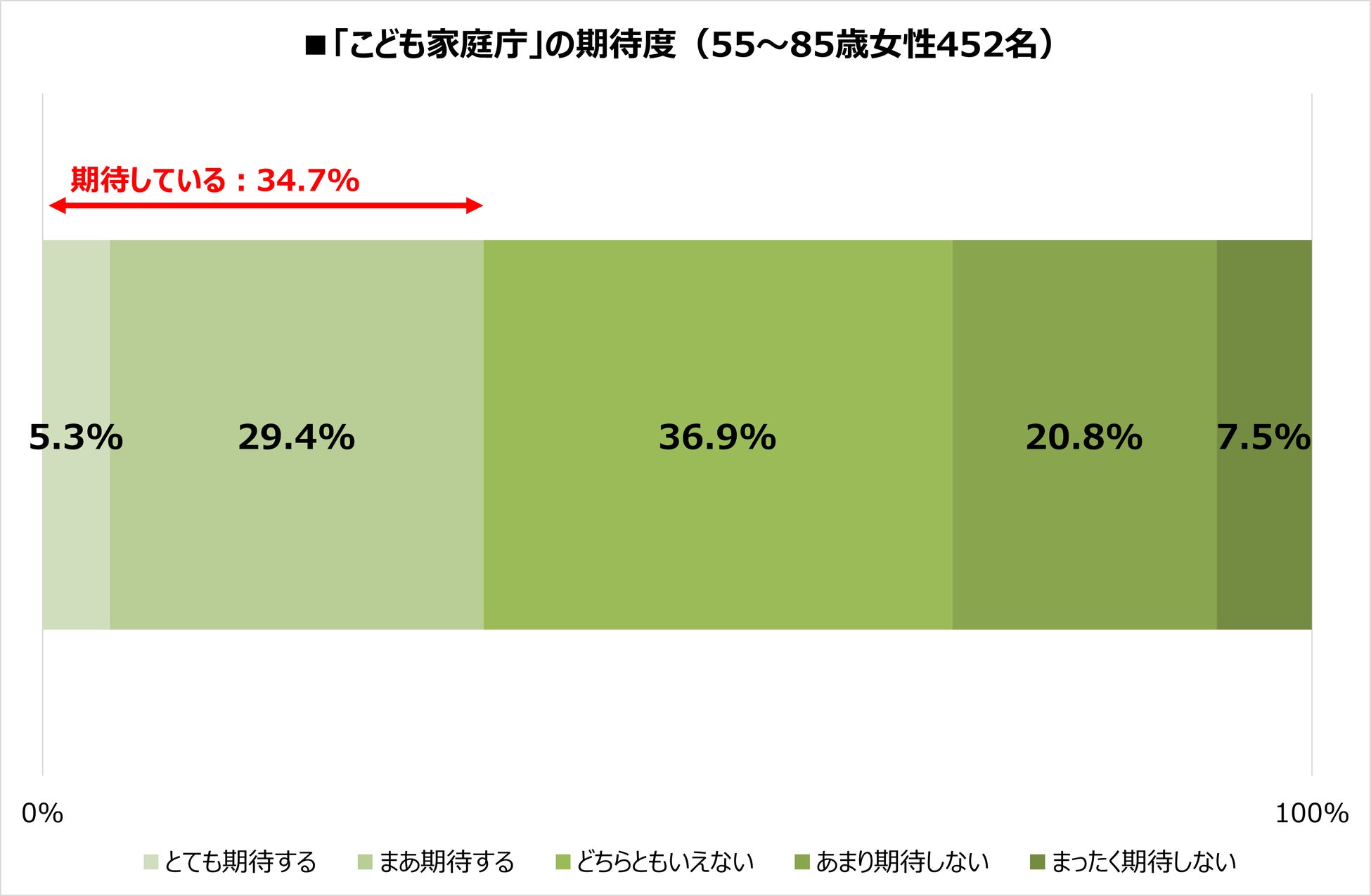 ⇒こども家庭庁の認知度は69.0%、こども家庭庁に期待する人は34.7%。