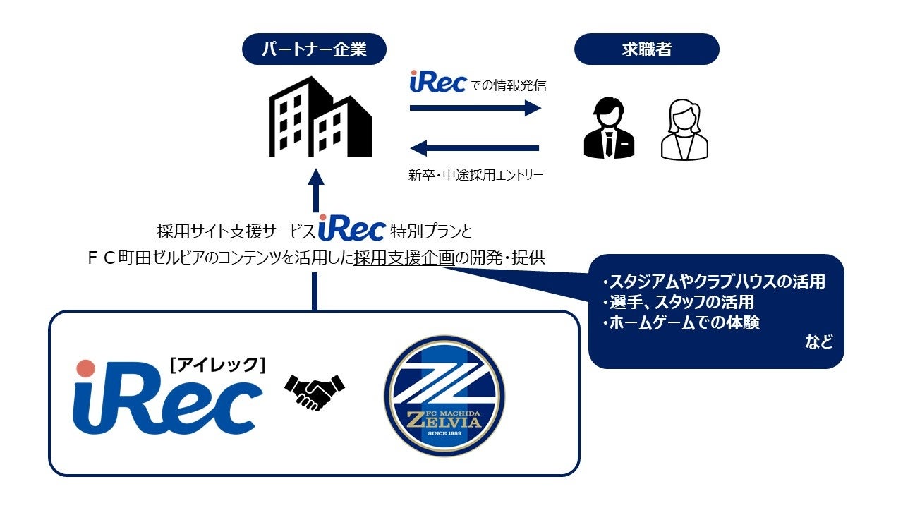 今回の契約で、プロコミットが提供する採用サイト支援サービス「iRec(アイレック)」と、ゼルビアの持つコンテンツを活用した、パートナー企業向けの採用支援を展開いたします。