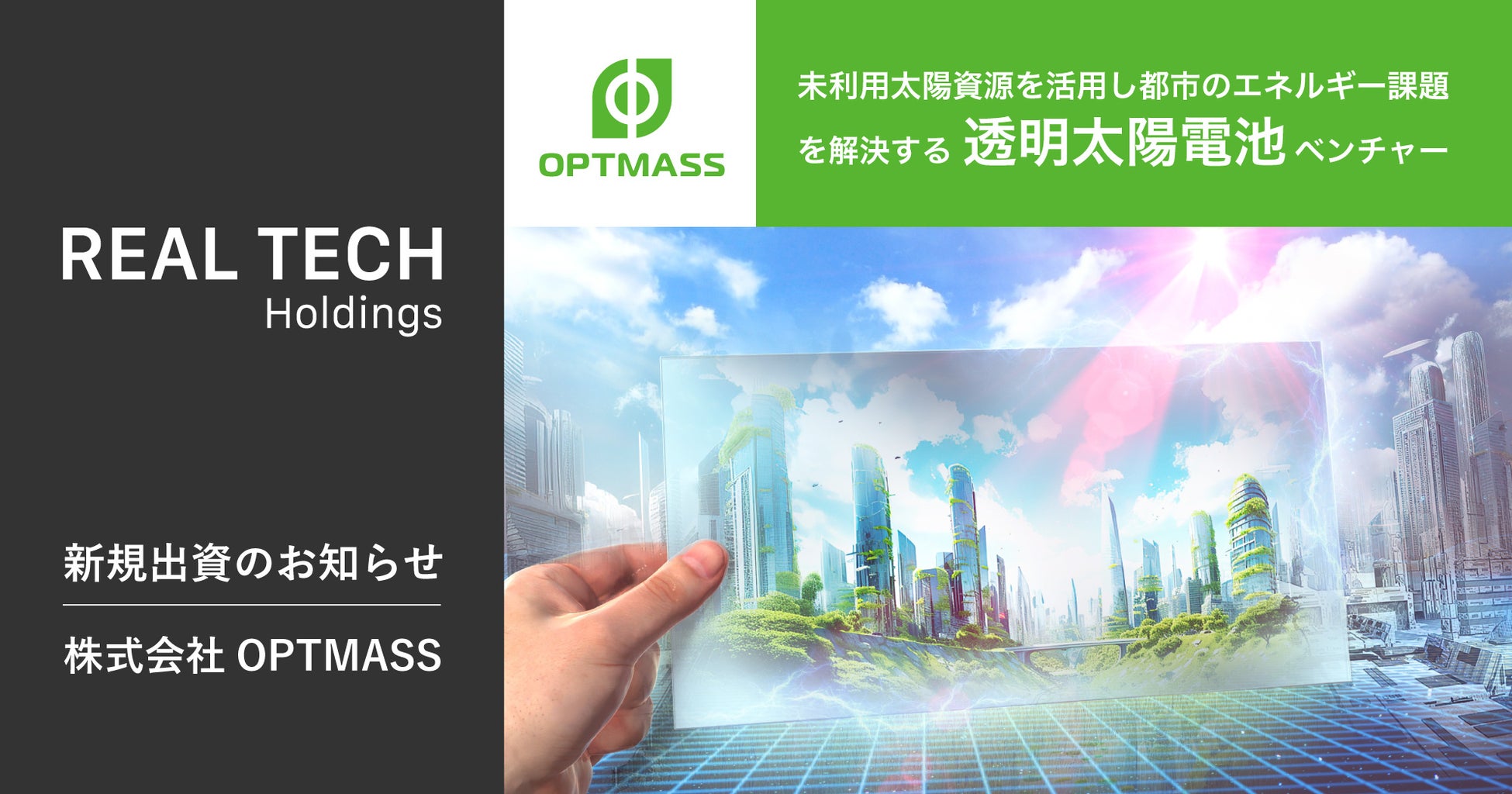 リアルテックホールディングス、未利用太陽資源を活用し都市のエネルギー課題を解決する透明太陽電池ベンチャーのOPTMASSへの出資を実施