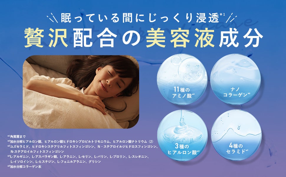 睡眠中のゴールデンタイムに3つの肌悩みにアプローチし、予防します。