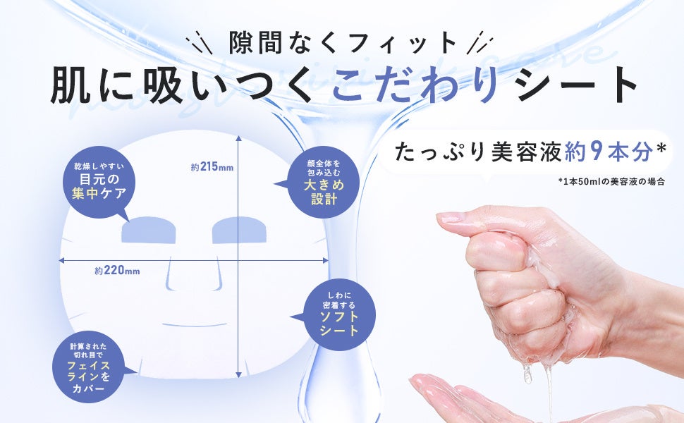 たっぷりの美容液がひたひたに入っているため、お肌にぐんぐん美容液が吸いつきます。