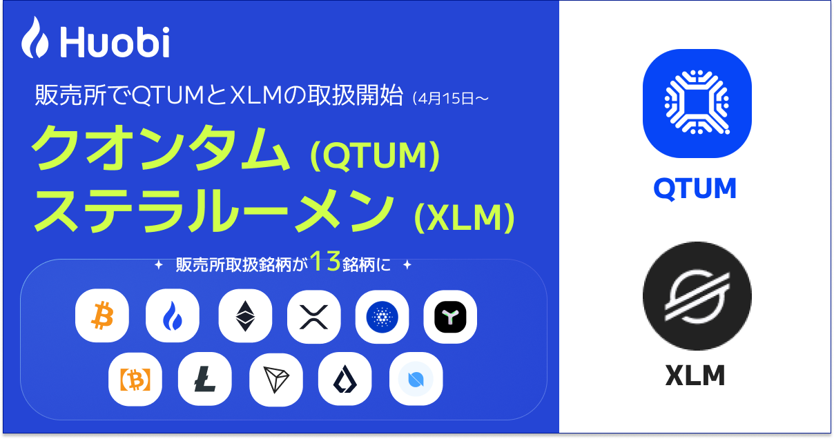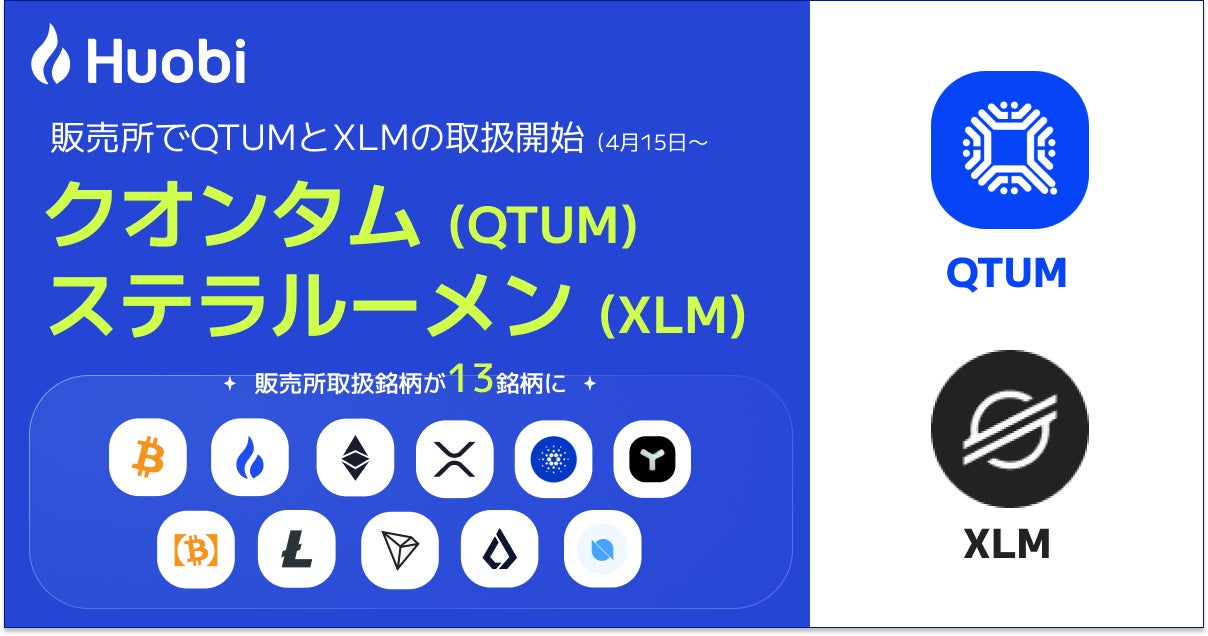 フォビジャパン株式会社(所在地:東京都港区、代表取締役社長:関 磊、以下「フォビジャパン」)は、暗号資産クオンタム(QTUM)・ステラルーメン(XLM)の取り扱いを「販売所」にて開始いたしますので、お知らせいたします。