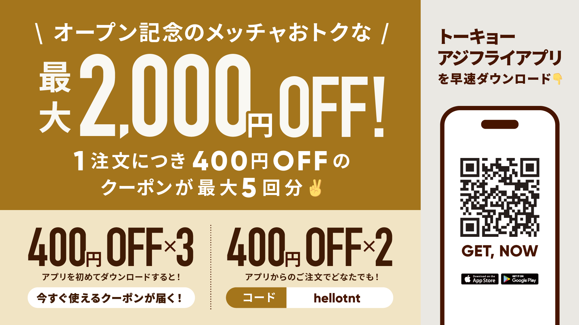 (1)初回アプリダウンロードクーポン(400円OFF×3回分)