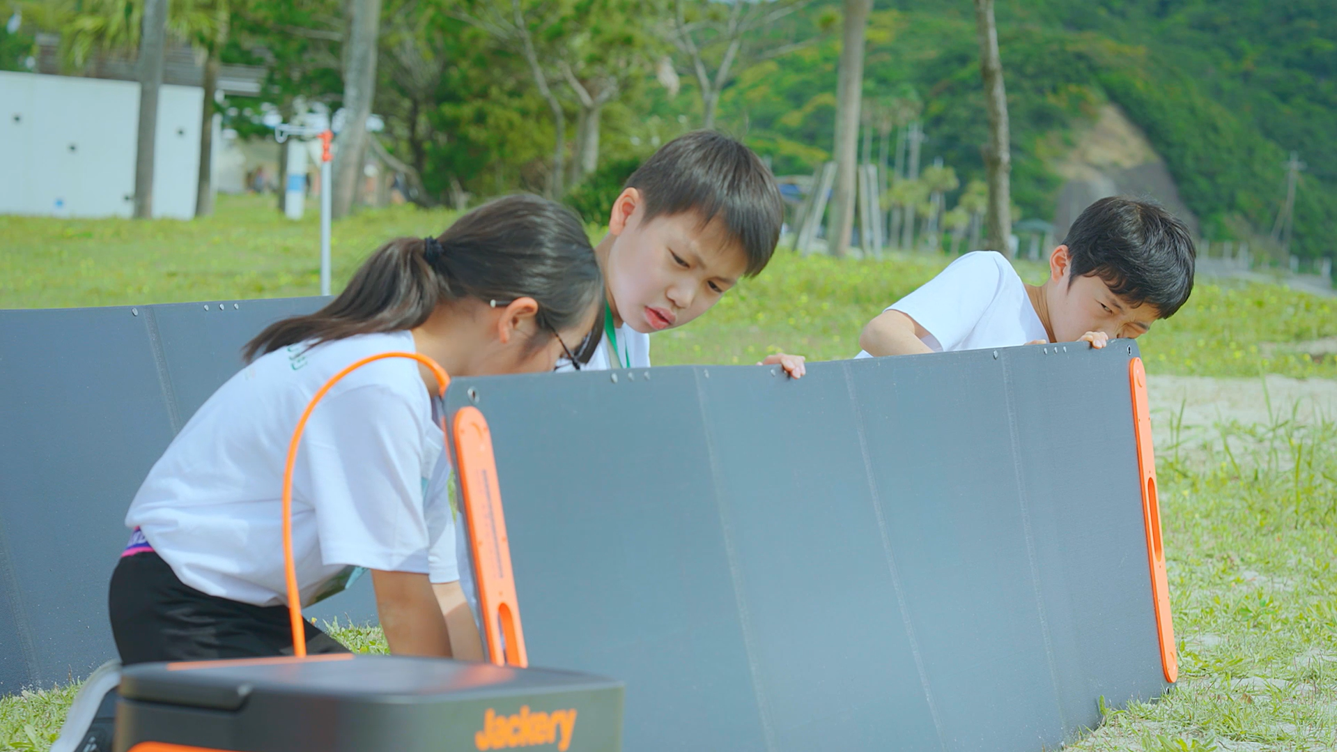 そして実際の再生可能エネルギーとして、Jackery Solar Generator(ソーラーパネルとポータブル電源のセット)を使用した太陽光による発電とその電力でポータブル電源を充電する体験を行いました。