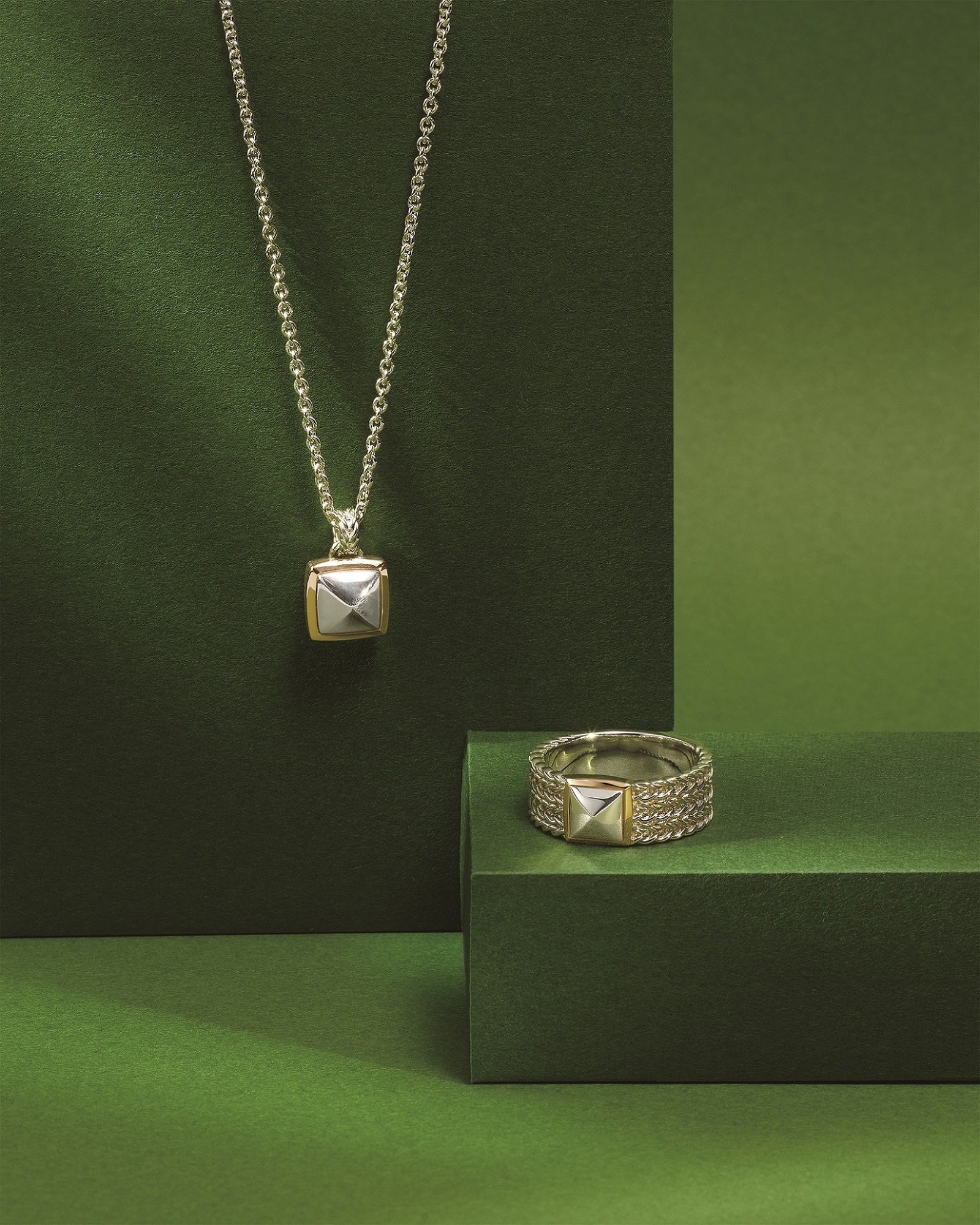 シルバーとK18イエローゴールドを組み合わせた高級感ある“BRAID(ブレイド)”シリーズ。ボリュームのあるスタッズのすっきりとしたフォルムに編みこんだようなディテールが加わり、シンプルながらも存在感を放ちます。細かい編目は使い込むほど立体感や風合いが増し、味わい深いコントラストを生みます。