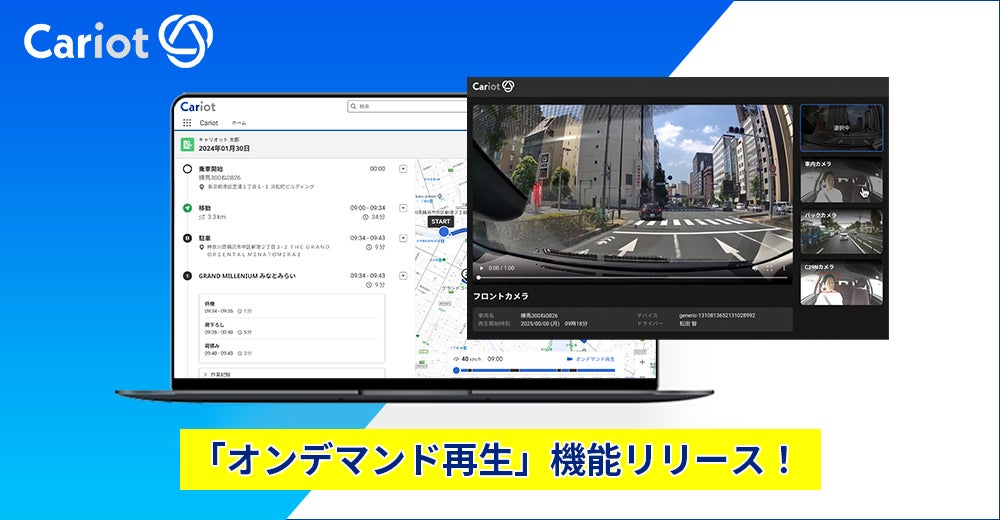 株式会社キャリオット(本社:東京都港区、代表取締役社長 齋藤 洋徳)がサービス展開するクルマと企業をつなぐドライバー働き方改革クラウド「Cariot(キャリオット、以下Cariot)」は、運転中(ドライブレコーダー動作中)の映像を、クラウド経由で確認できるオンデマンド再生機能を実装しました。