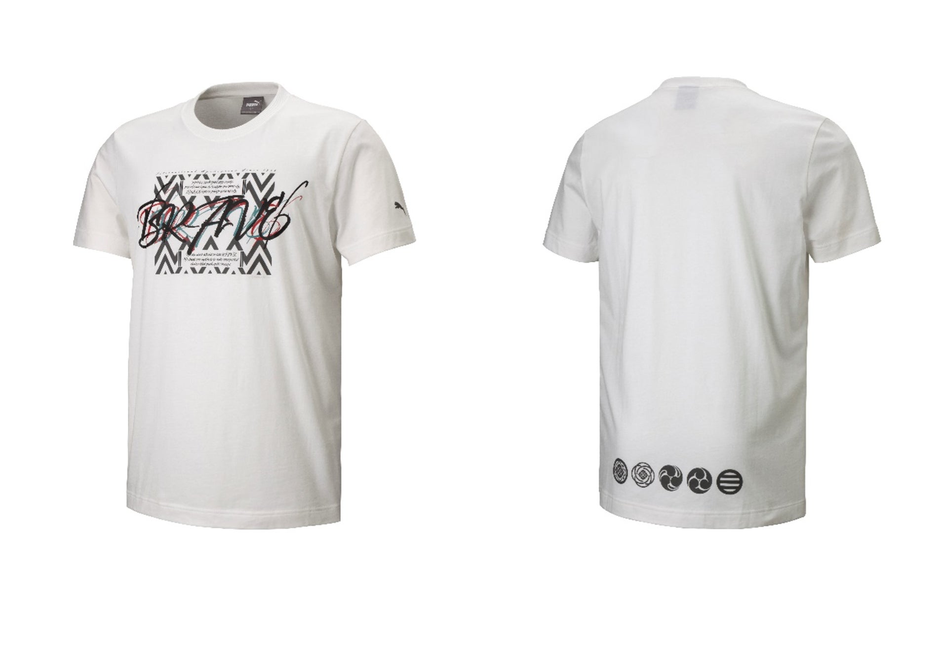 店頭やオンラインストアで使用されるキービジュアルはPUMAのブランドバリューBrave,Confident,Determined, Joyfulにあう刀剣男士を選定し、ブランドバリューを体現するものになっております。さらに、商品にデザインされているグラフィックをキービジュアルの背景として用いることで、コラボアイテムのグラフィカルなイメージを持たせながら、明るく爽やかな印象にしております。