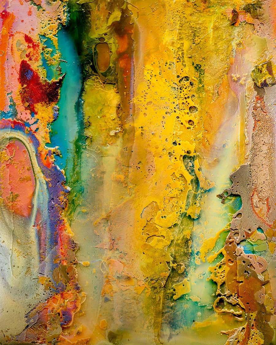 横田大輔(b.1983, Japan)は日本を代表する写真家として、世界中の展覧会に参加しています。著名な美術館であるTate Modernでも作品を発表しています。横田の制作方法は極めて特殊であり、フィルムの表面に熱湯をかけるなど化学変化させ、その複雑な表情をそのまま作品に取り入れています。リコーでは、写真作品をベースに、そこに見られるシワや隆起までの細やかなテクスチャを立体化することに取り組みました。