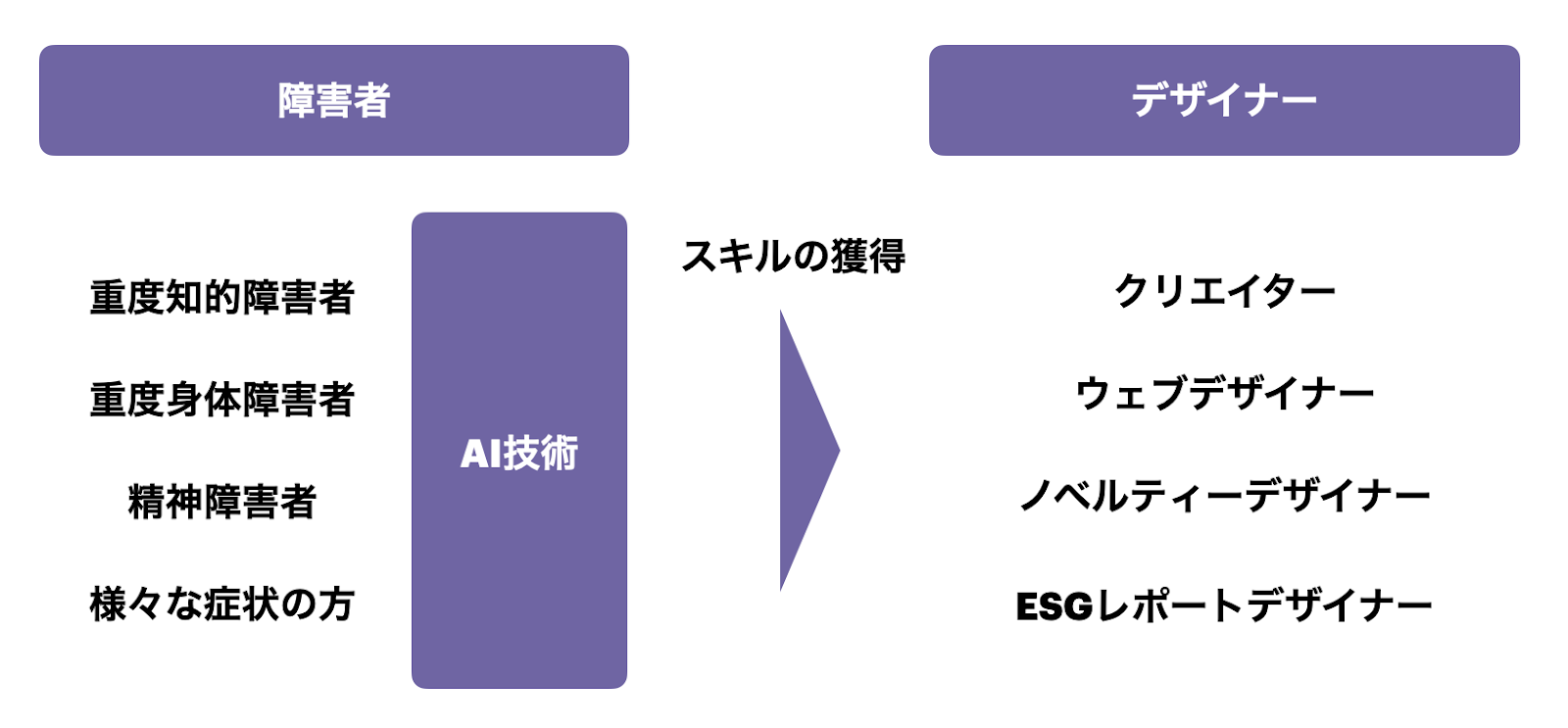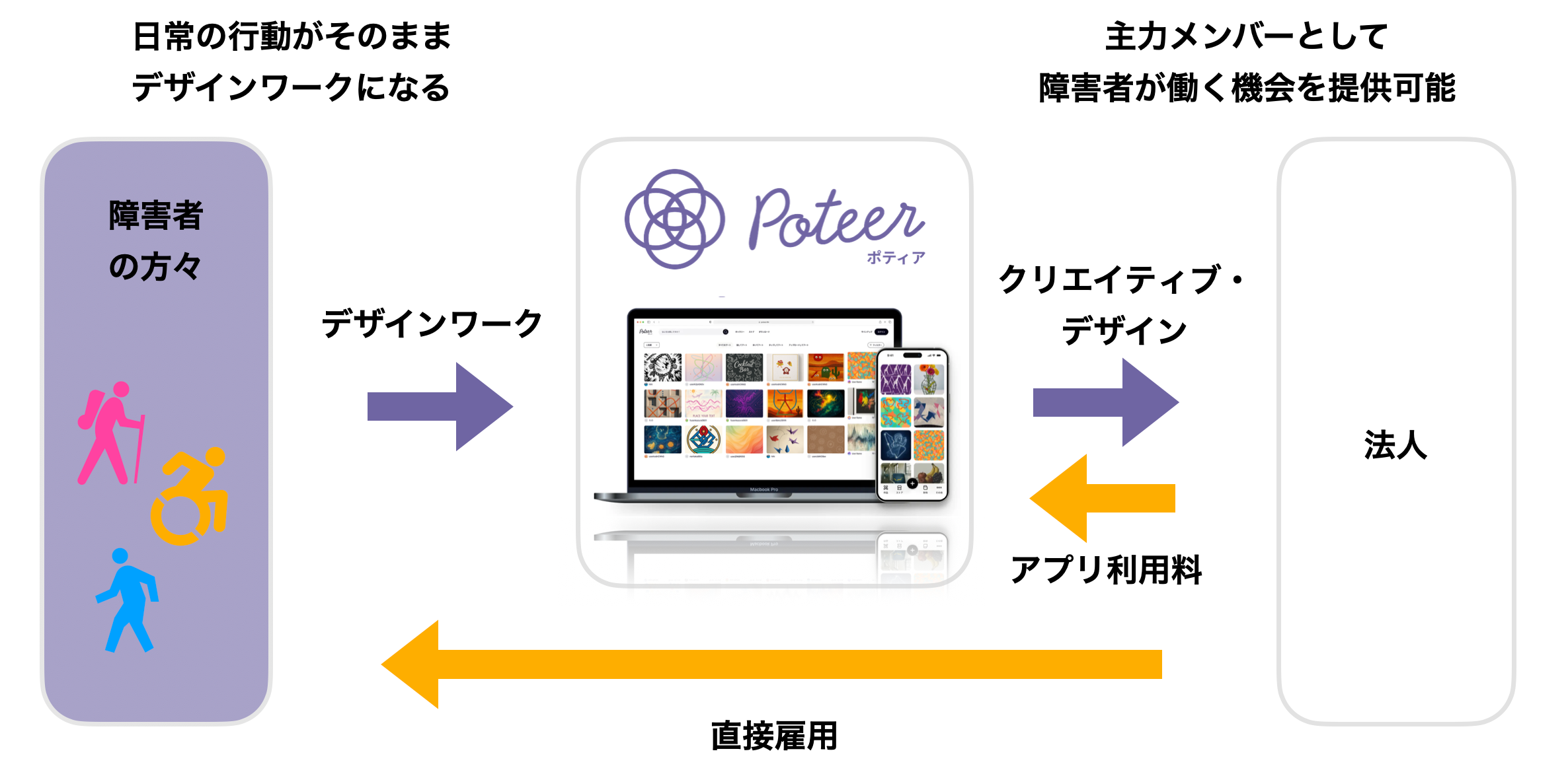 Poteerは、AIの力で障害のある方の可能性を拡張し、雇用・創造・収益が循環する社会インフラを目指しています。