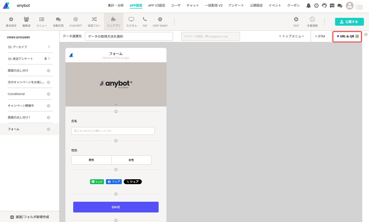 4. APP設定>ミニアプリ>URL&QRをクリック