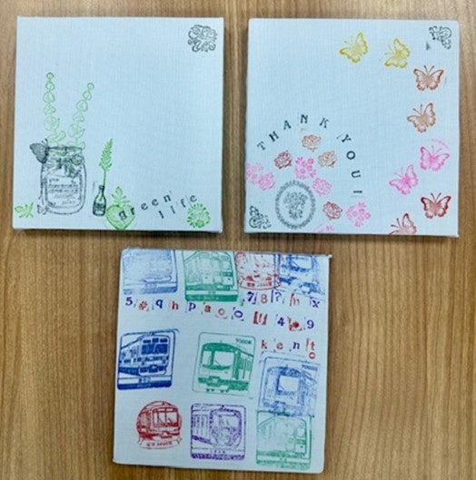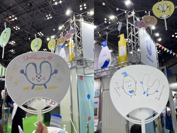 たまプラーザ駅、南町田グランベリーパーク駅で回収したユニリーバ社製品の空き容器で作ったうちわに、自由に絵を描いてオリジナルのうちわを作ります