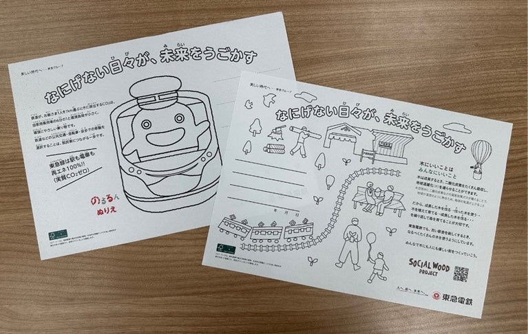東急線キャラクター「のるるん」と東急電鉄の環境の取り組みの一つである「SOCIAL WOOD PROJECT(ソーシャルウッドプロジェクト)」のぬりえを楽しみながら、地球にとってよいことを学べます
