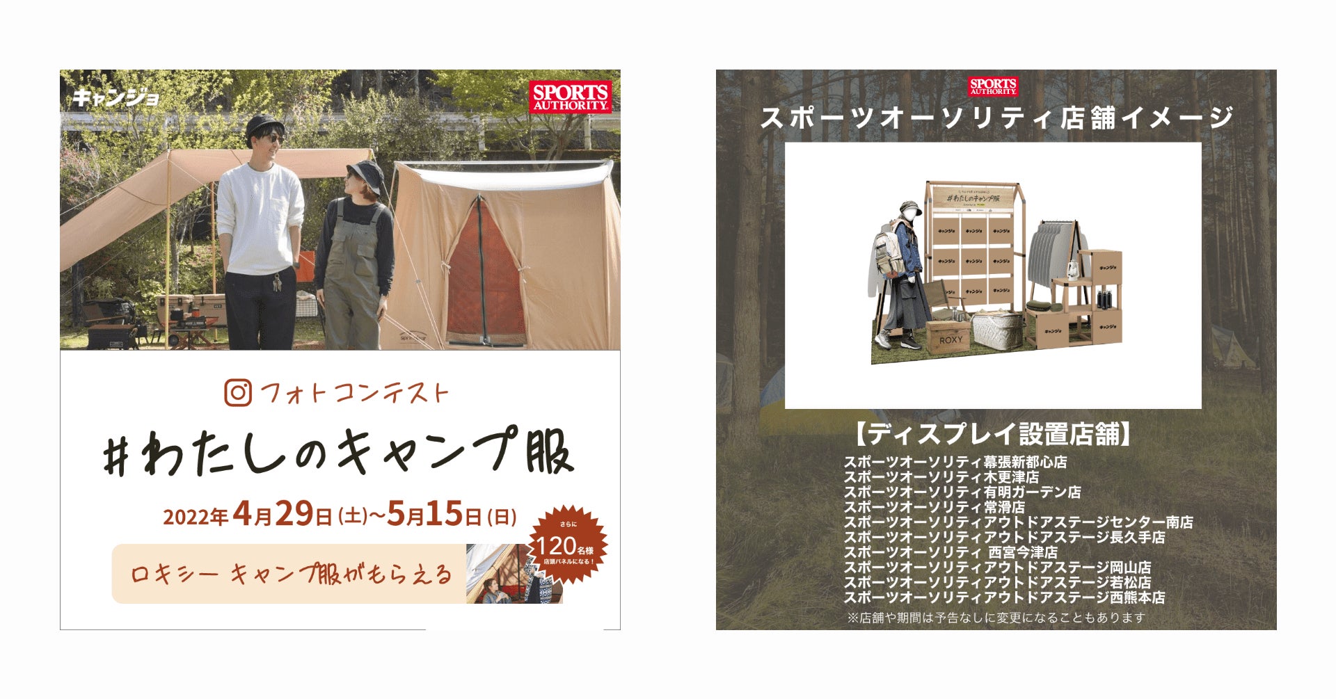 キャンプ女子 × スポーツオーソリティのコラボ企画「#わたしのキャンプ服」が5月27日(金)〜6月27日(月)まで開催。全国10店舗のスポーツオーソリティにてスペシャル展示が展開!