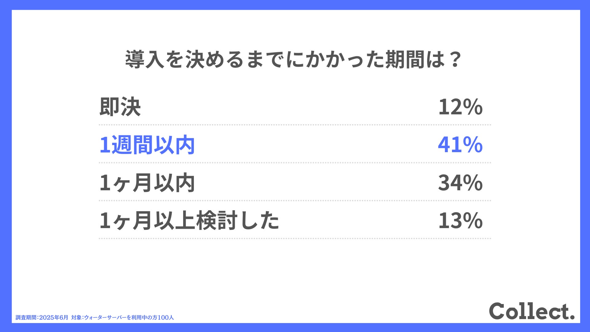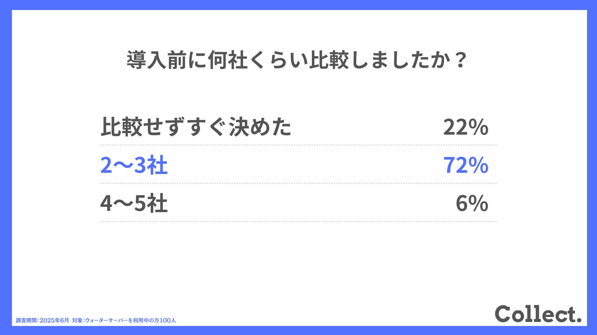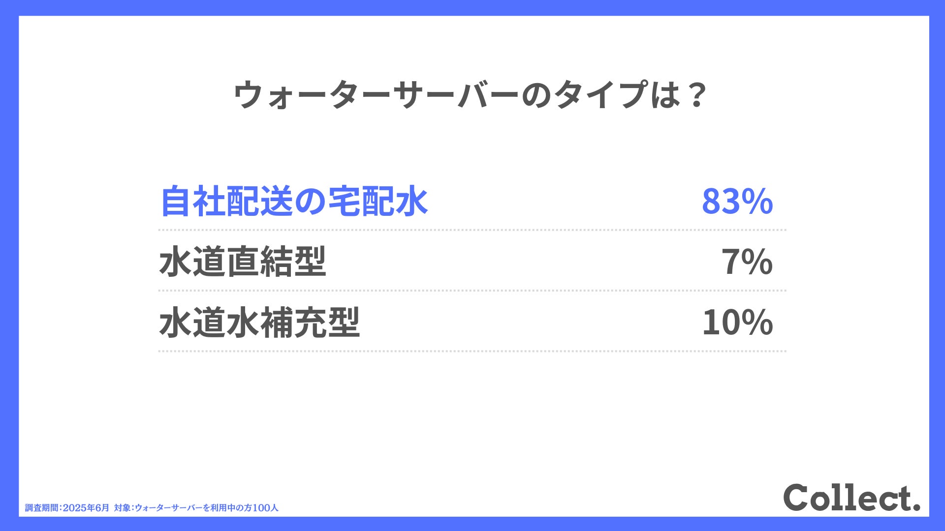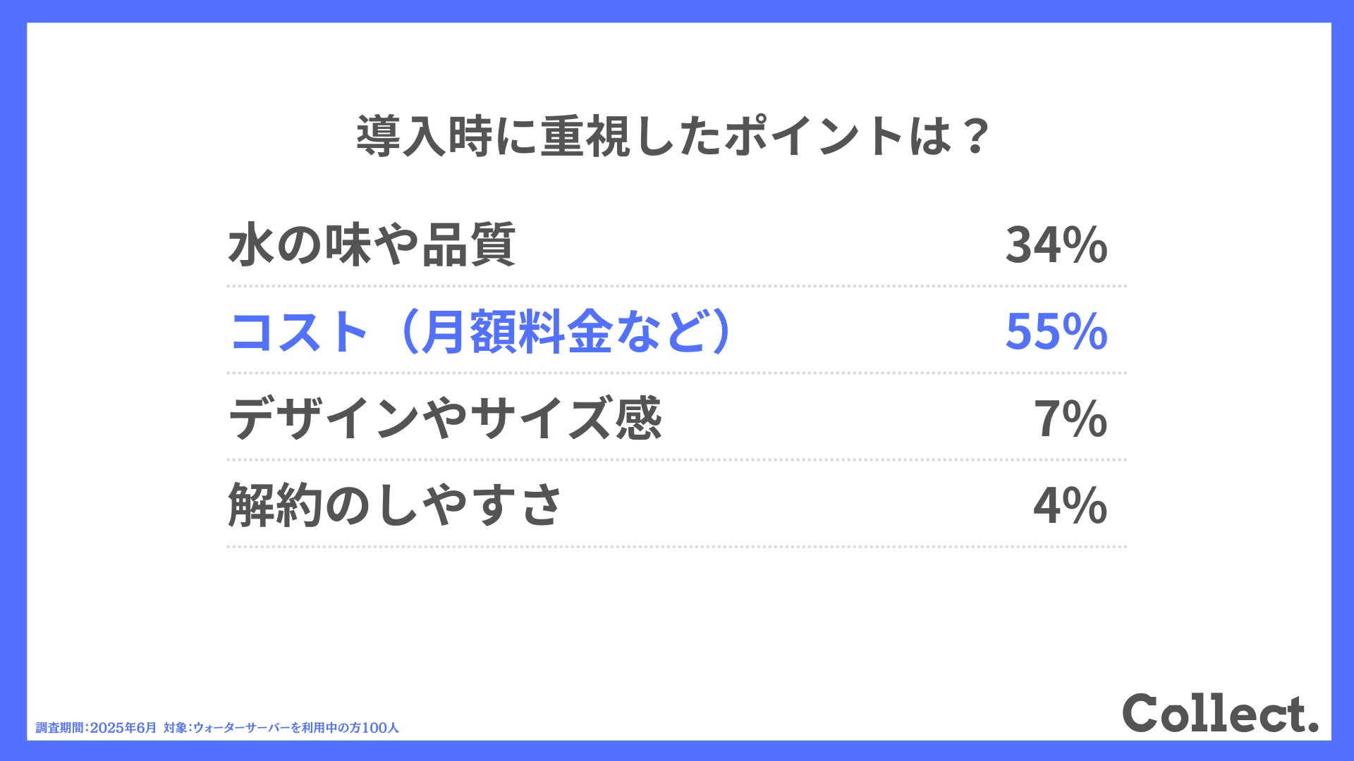 本アンケート結果や画像をご利用いただく際は、引用元として「Collect.(コレクト)URL(https://www.dm-s.co.jp/collect/water-server/)」へのリンク設置をお願いいたします。