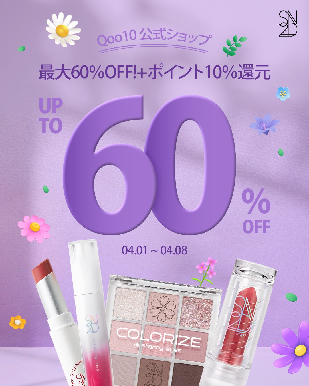 今回S2NDQoo10メガポイントでの最大60%セイルを行う。S2ND Qoo10メガポイント で注目アイテムは、「カラーライズスターリーアイズ 全5色 2,970円(税込)」と「 ウジュライクリップバーム 全4色 5.5g 1,650円(税込)」で40%セイルの商品がメガポイント対象プラスセイルのお得なショッピングができる。